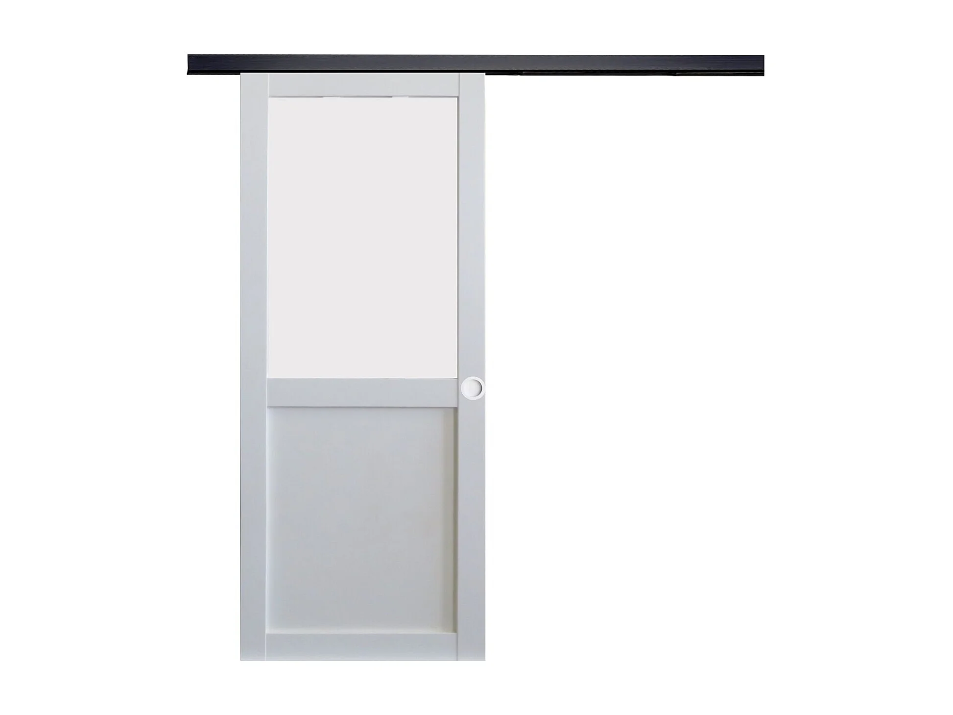 Porte Coulissante Athena Blanc H204 X L93 + Rail Alu Bandeau Noir Et Coquilles Blanc Gd Menuiseries