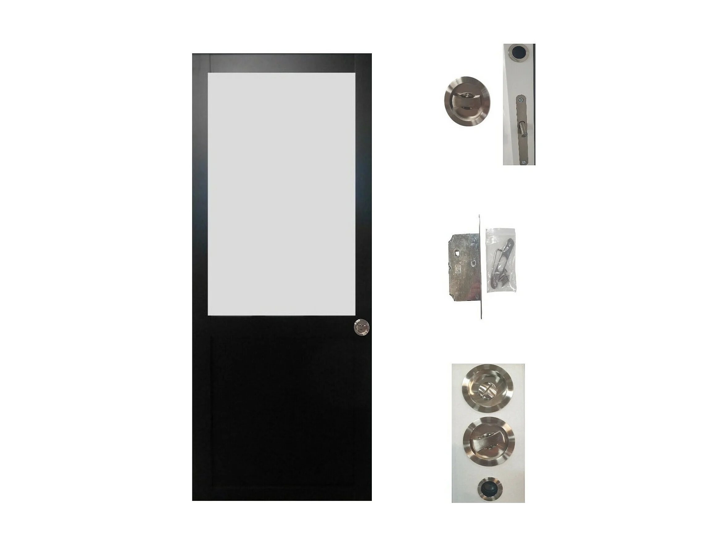 Porte Coulissante Athena Noir H204 X L83 + Serrure A Condamnation Gd Menuiseries
