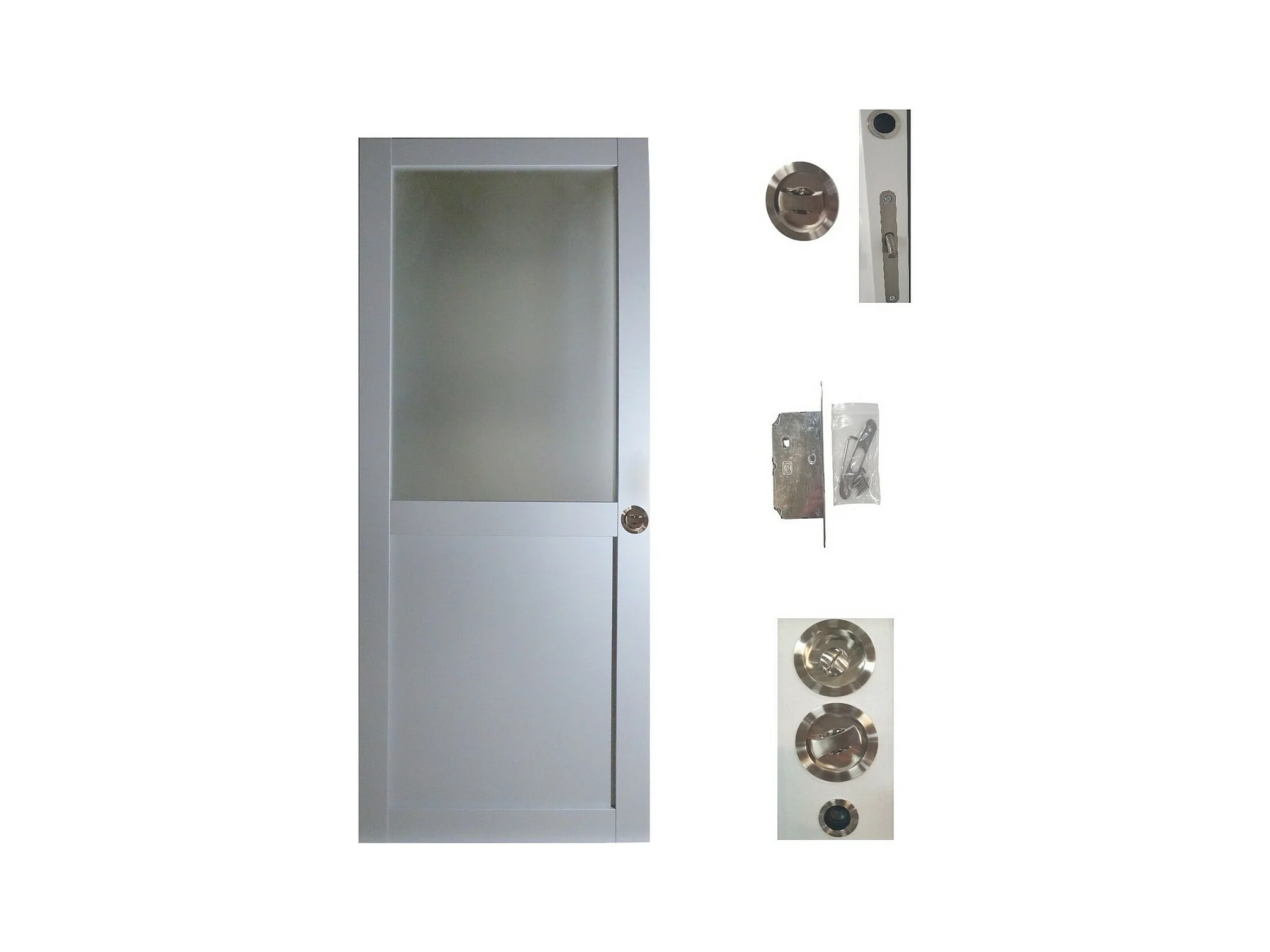 Porte Coulissante Athena Ral7035 Vitree H204 X L73 + Serrure A Condamnation Gd Menuiseries
