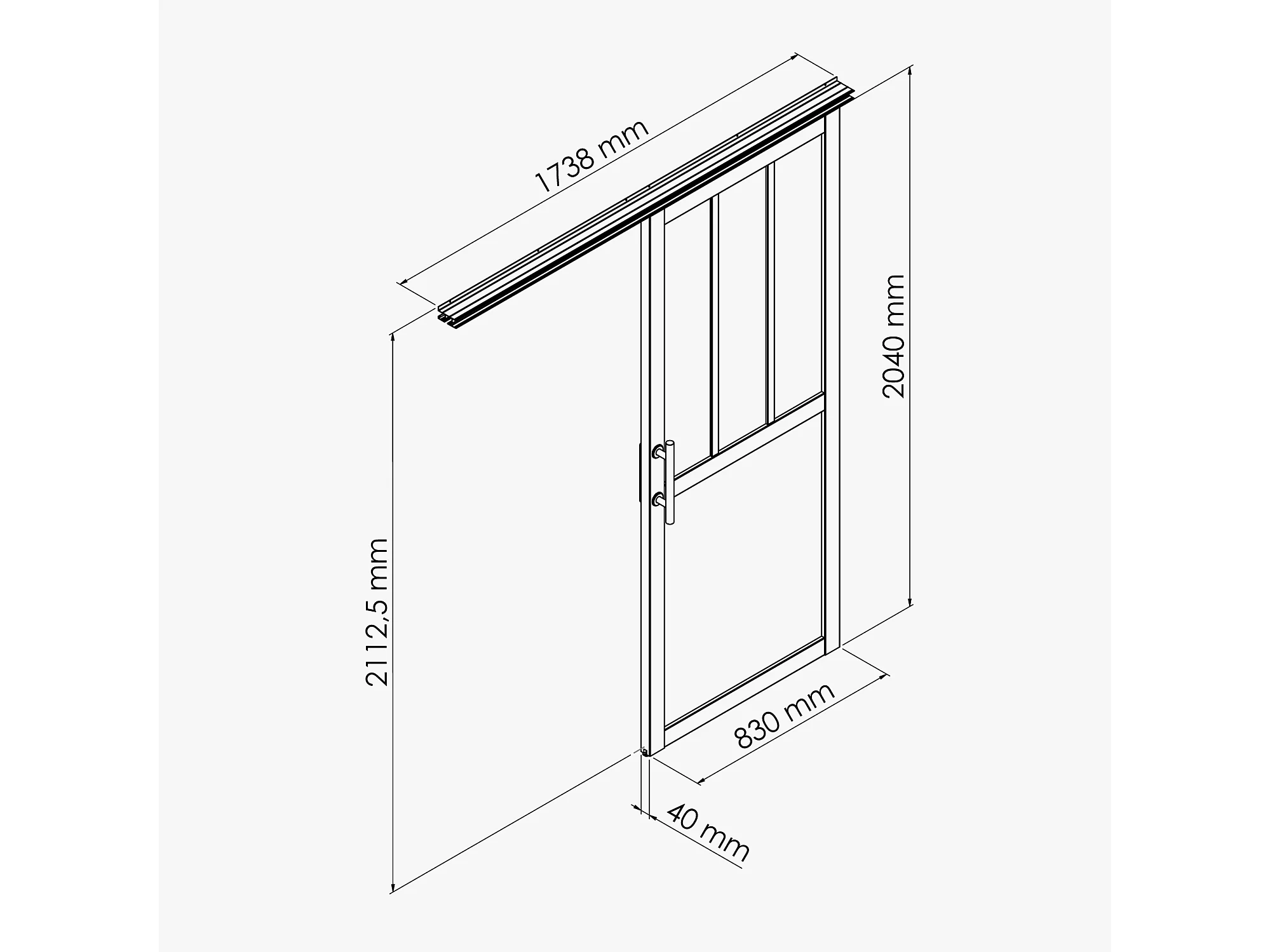 Porte Coulissante avec Rail - Atelier Noire 83 cm - Avec poignée