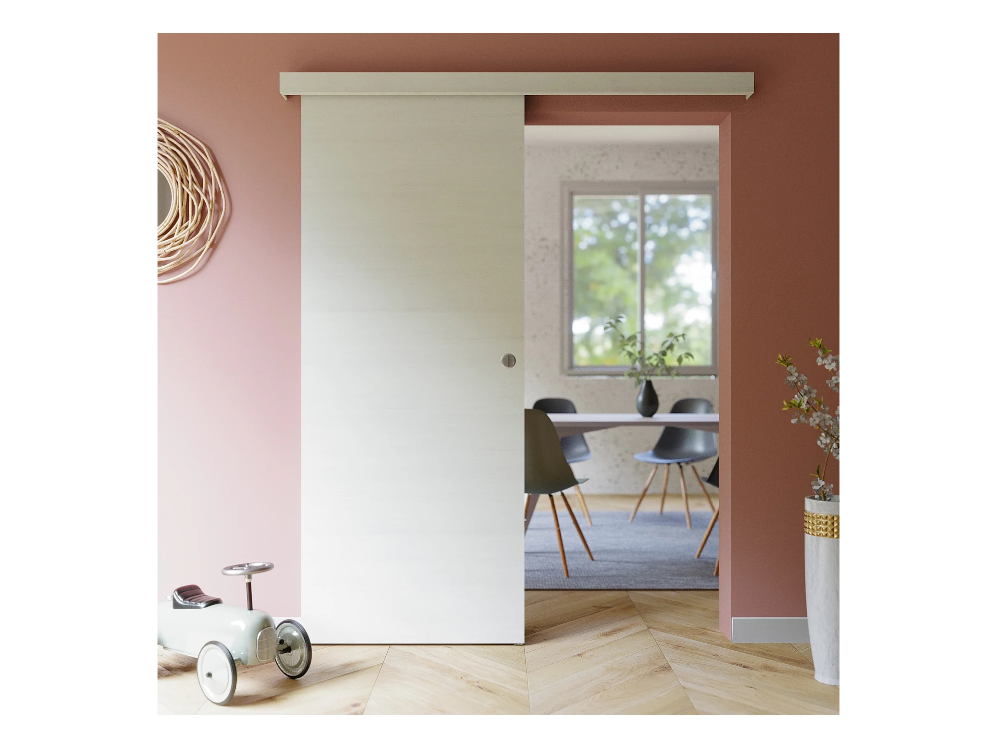 Porte Coulissante avec Rail - Helsinki 83 cm - Sans butée