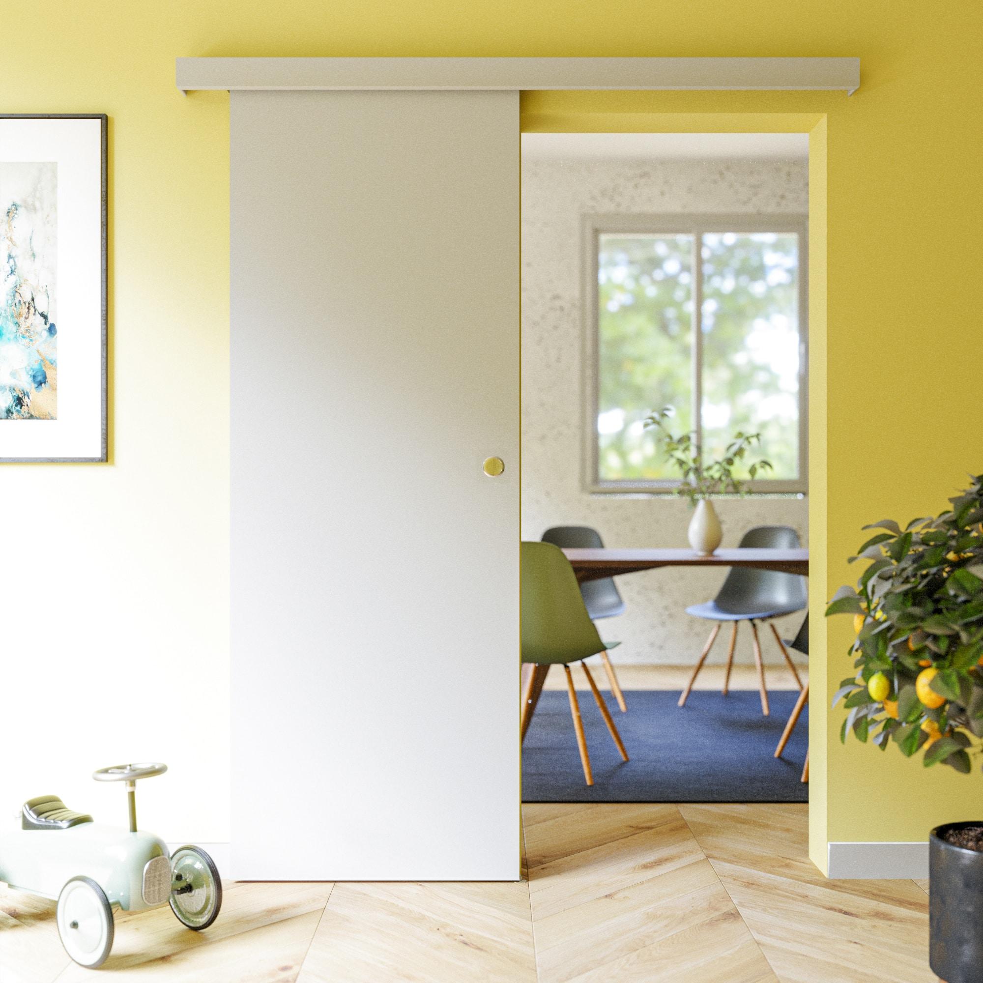 Porte Coulissante avec Rail - Prépeinte Plane 73 cm - Sans butée