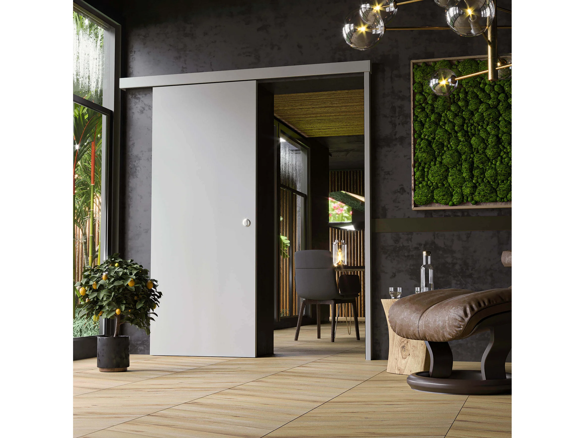 Porte Coulissante avec Rail - Prépeinte Plane 83 cm - Avec butée