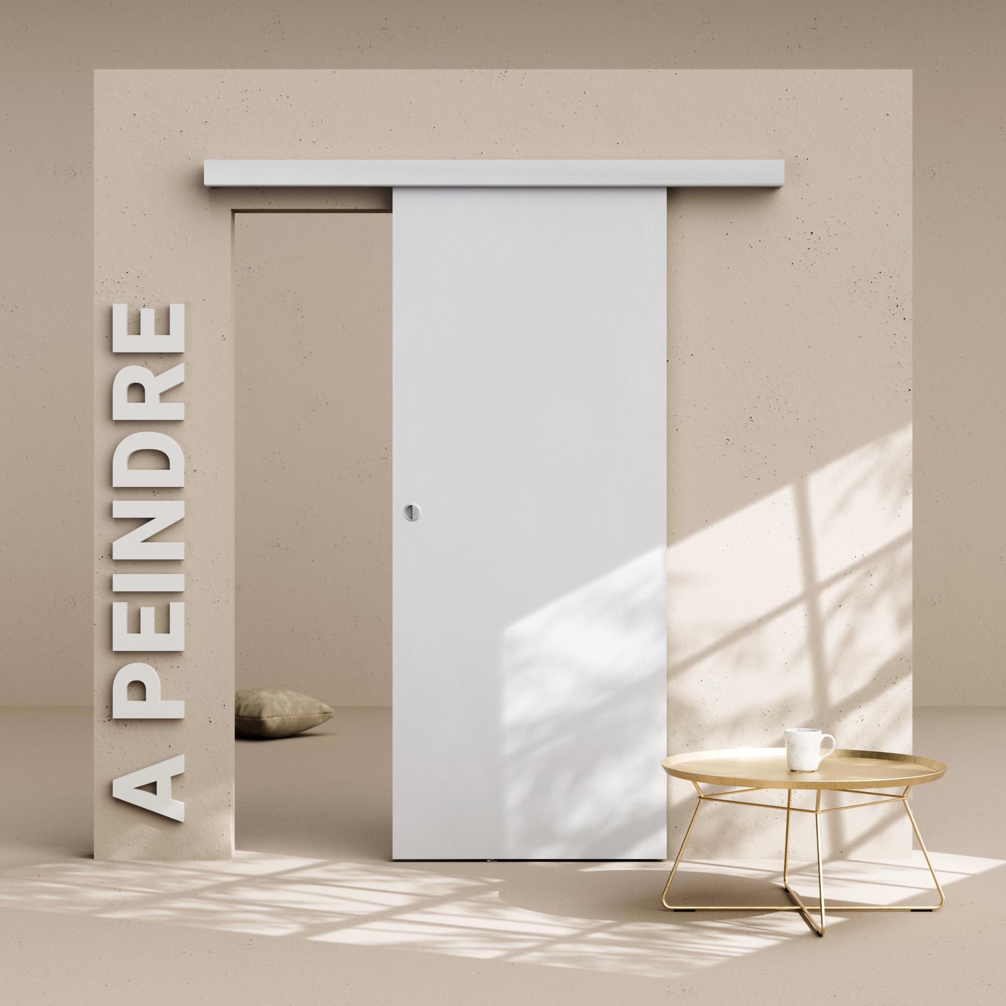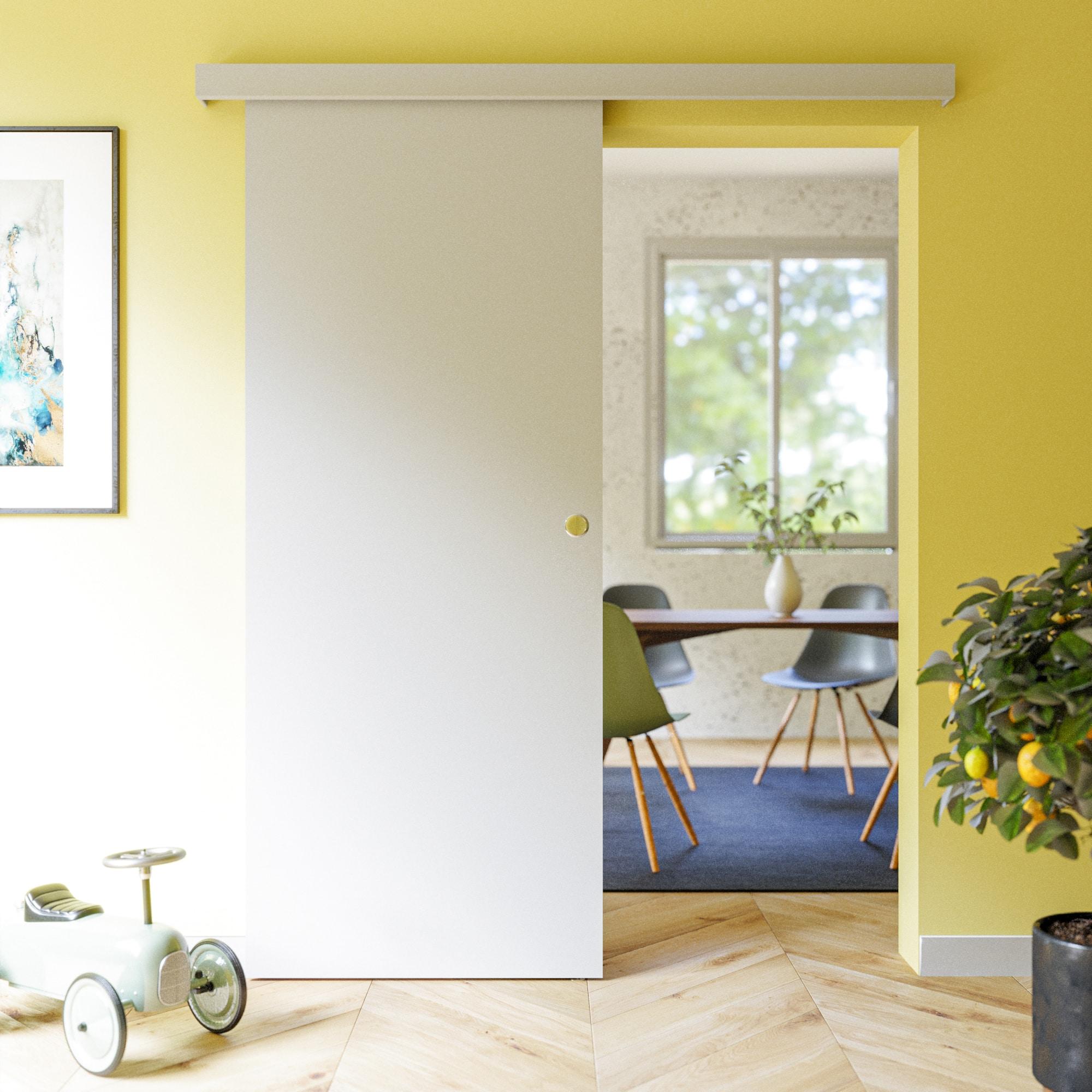Porte Coulissante avec Rail - Prépeinte Plane 83 cm - Sans butée
