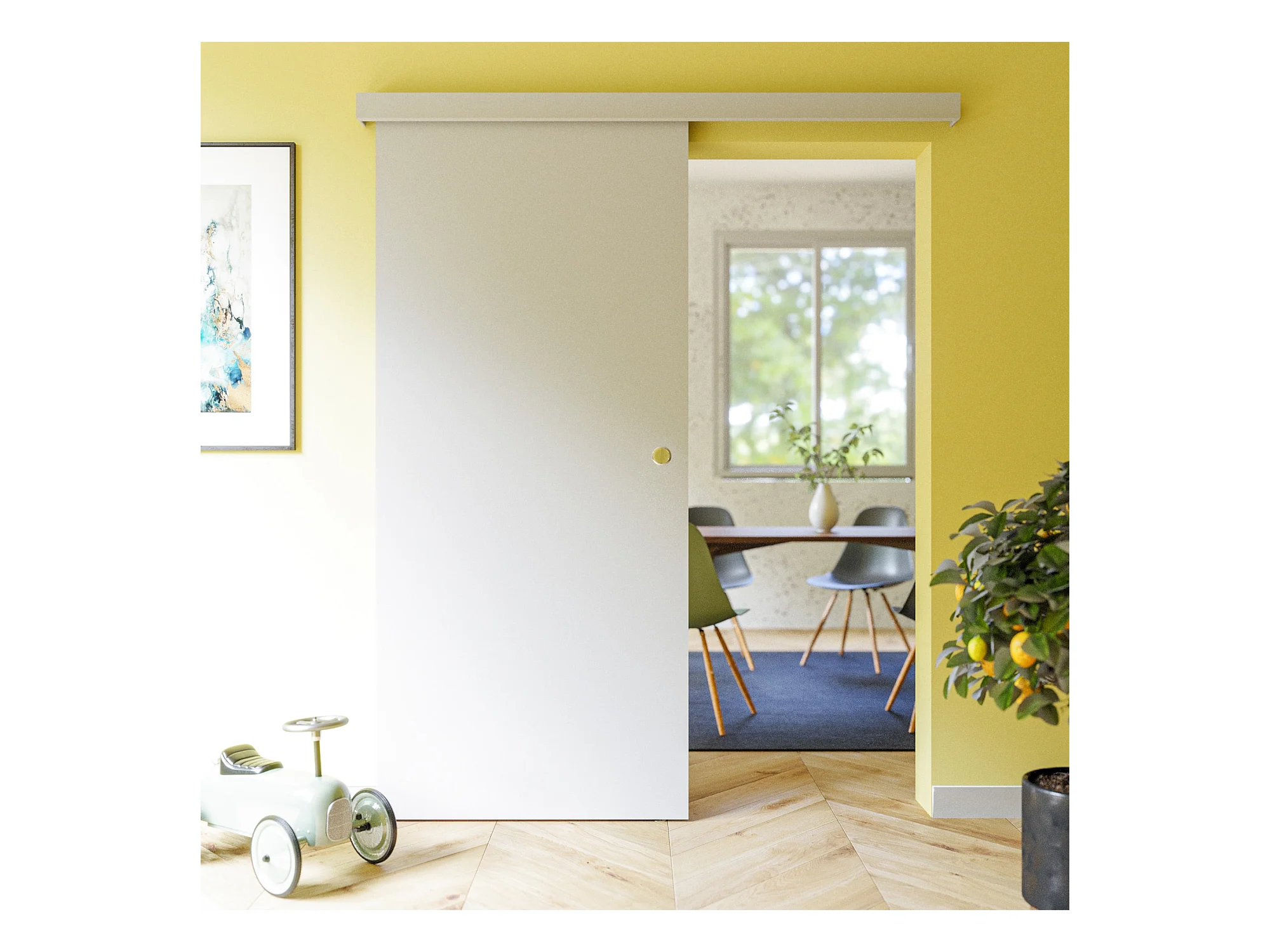Porte Coulissante avec Rail - Prépeinte Plane 93 cm - Sans butée