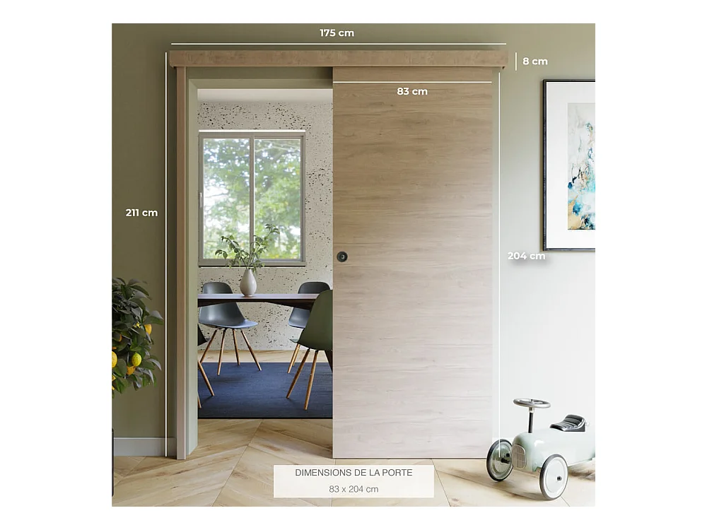 Porte Coulissante avec Rail + Serrure - Denver 83 cm