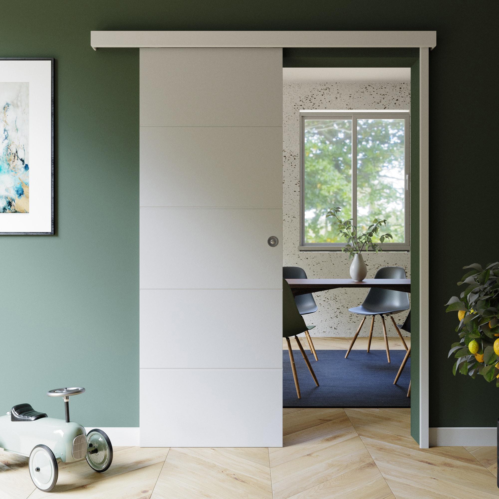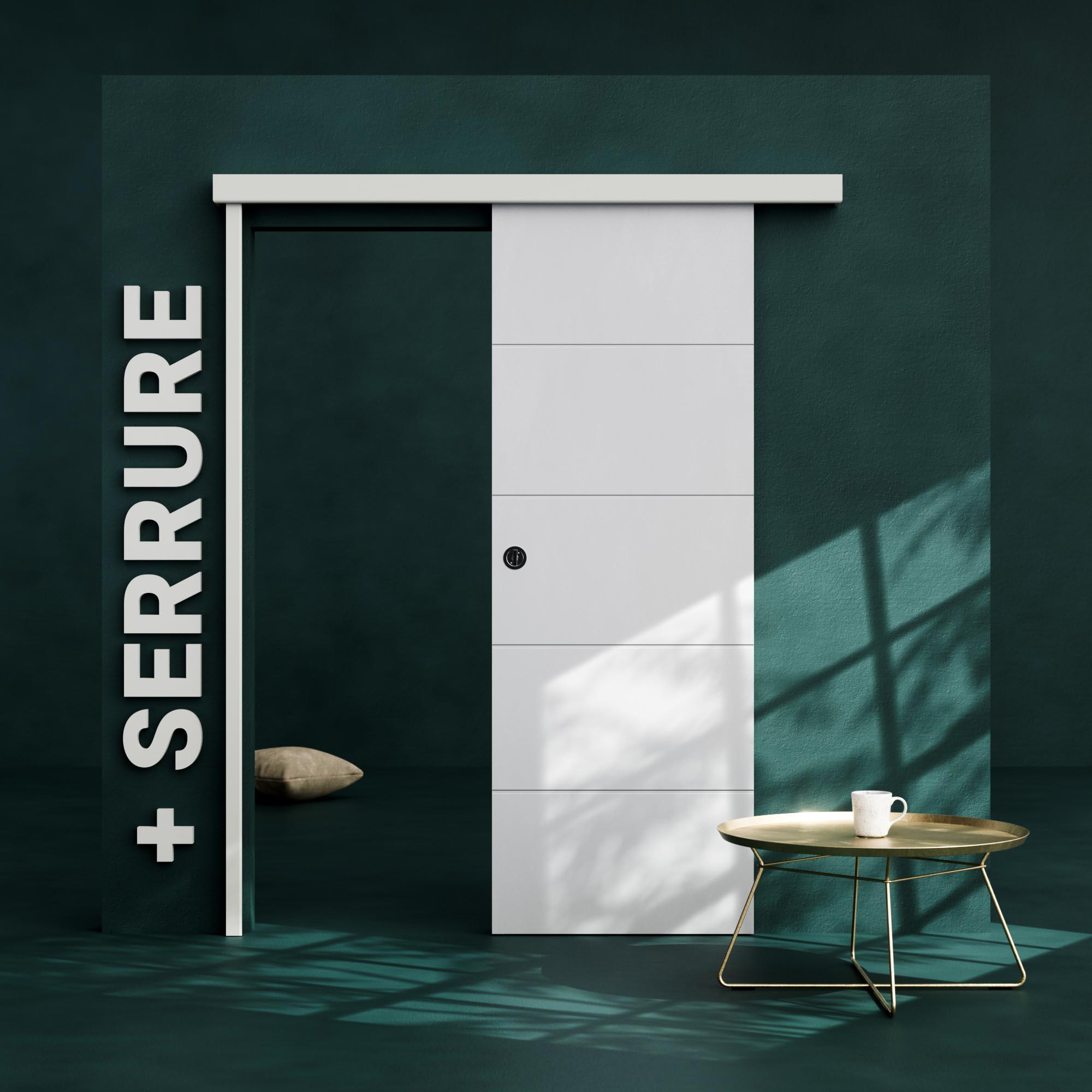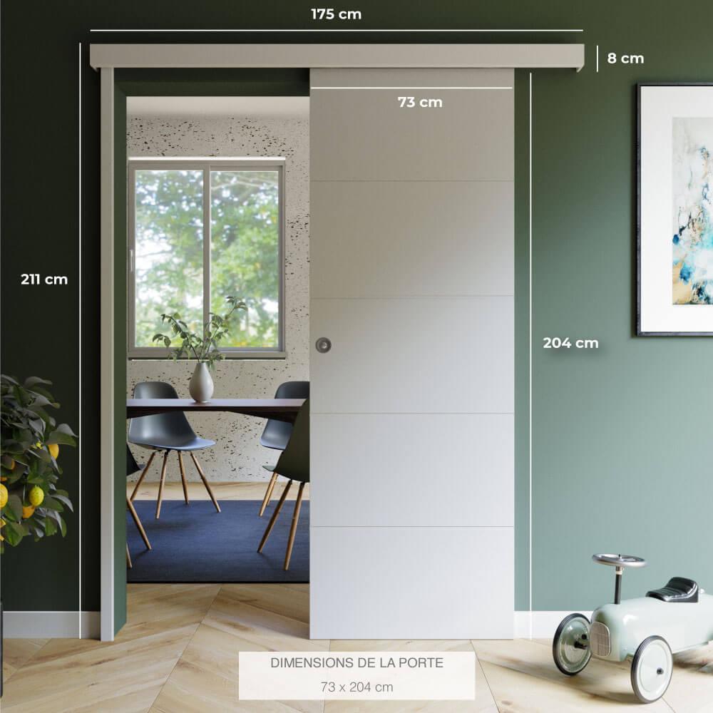Porte Coulissante avec Rail + Serrure - Prépeinte Ligne 73 cm