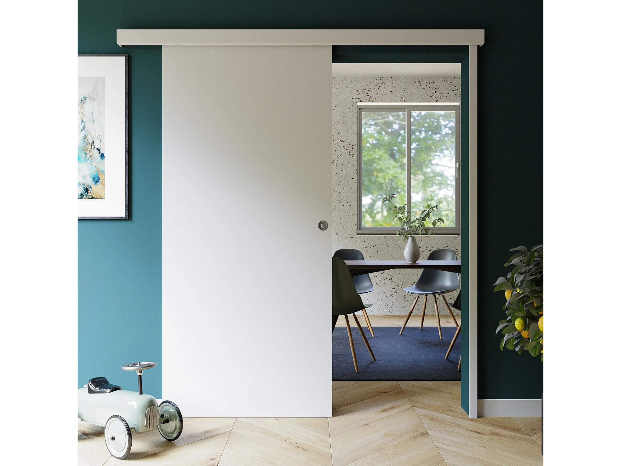Porte Coulissante avec Rail + Serrure - Prépeinte Plane 93 cm