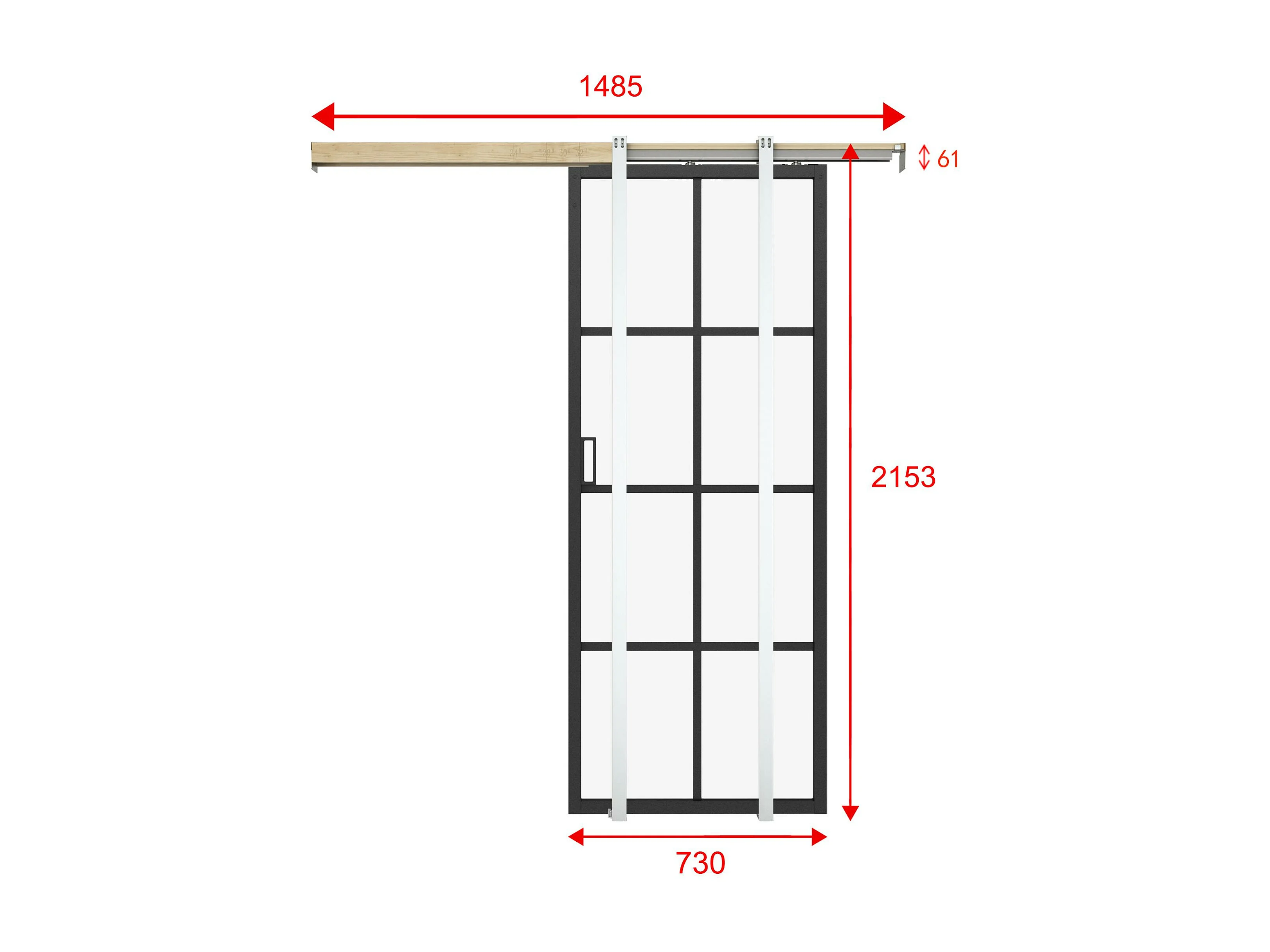 Porte coulissante avec système à galandage en aluminium et verre trempé dépoli - H205 x L73 cm - WILDEN II