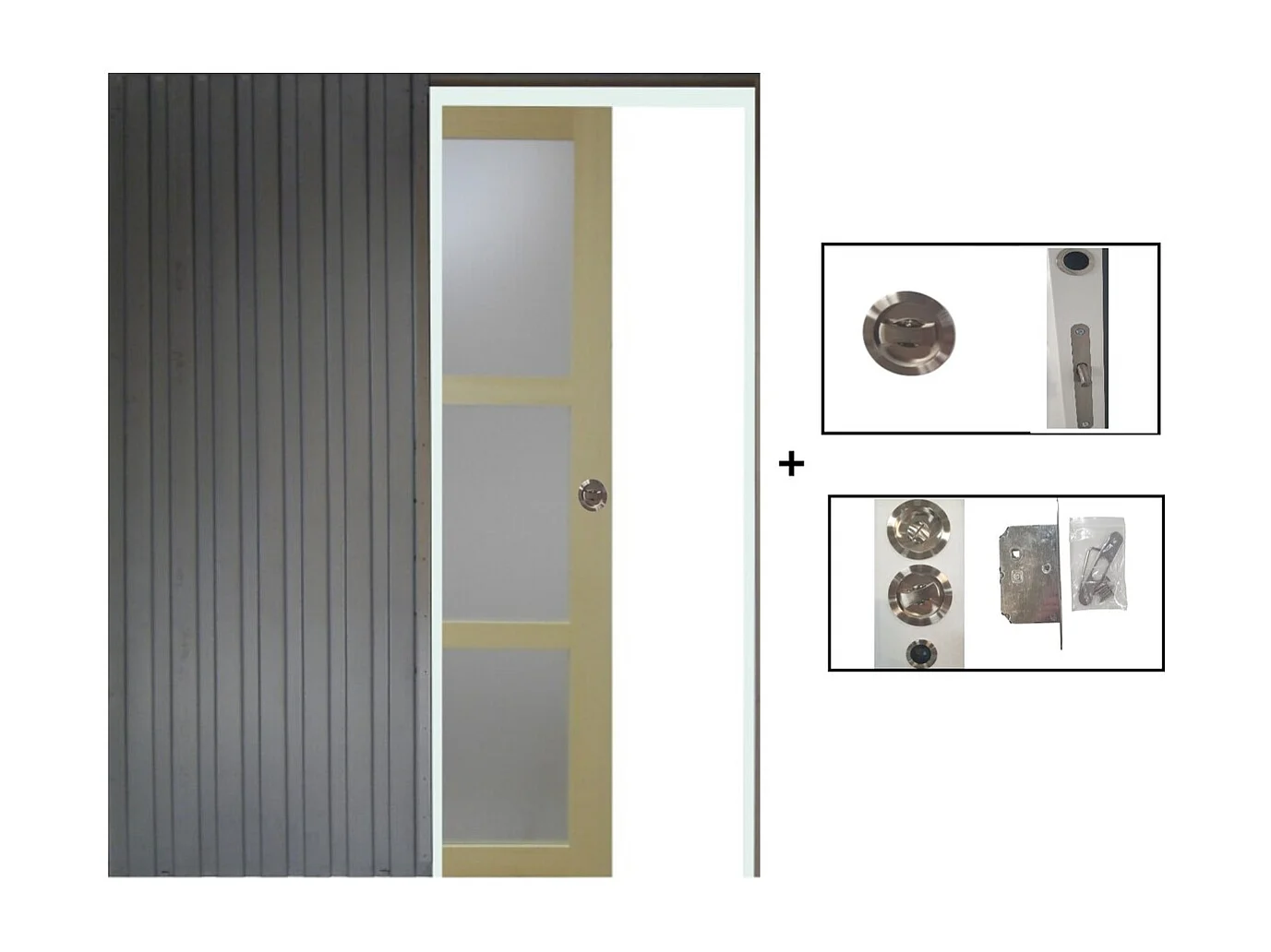 Porte Coulissante Bois Ayous Vitree H204 X L93 + Systeme A Galandage (sans Kit Finition) Gd Menuiseries