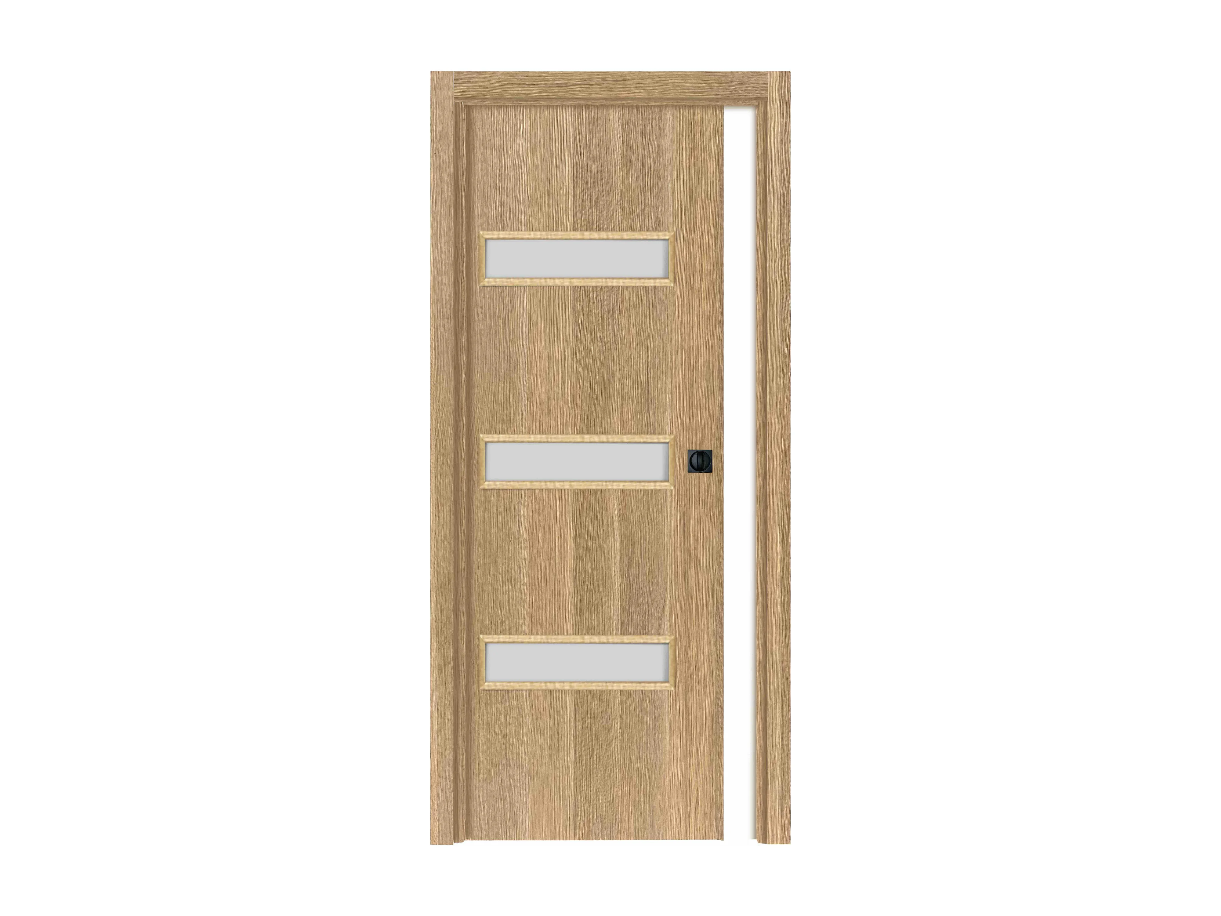 Porte coulissante cloison April 83 cm avec crochet rond condamnation noir