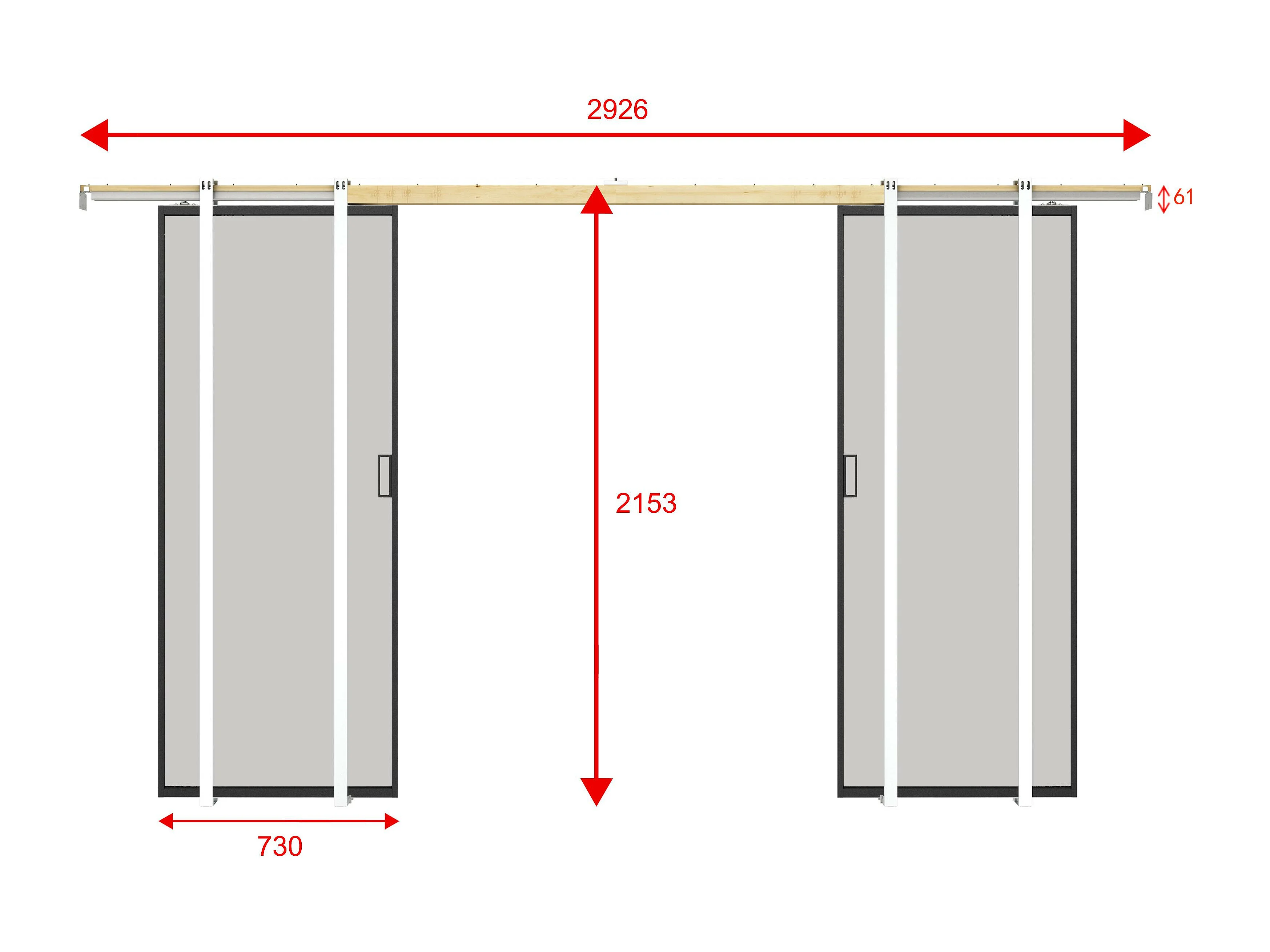 Porte coulissante double avec système à galandage - aluminium et verre trempé dépoli - 2 x H205 x L73 cm - LINCI II