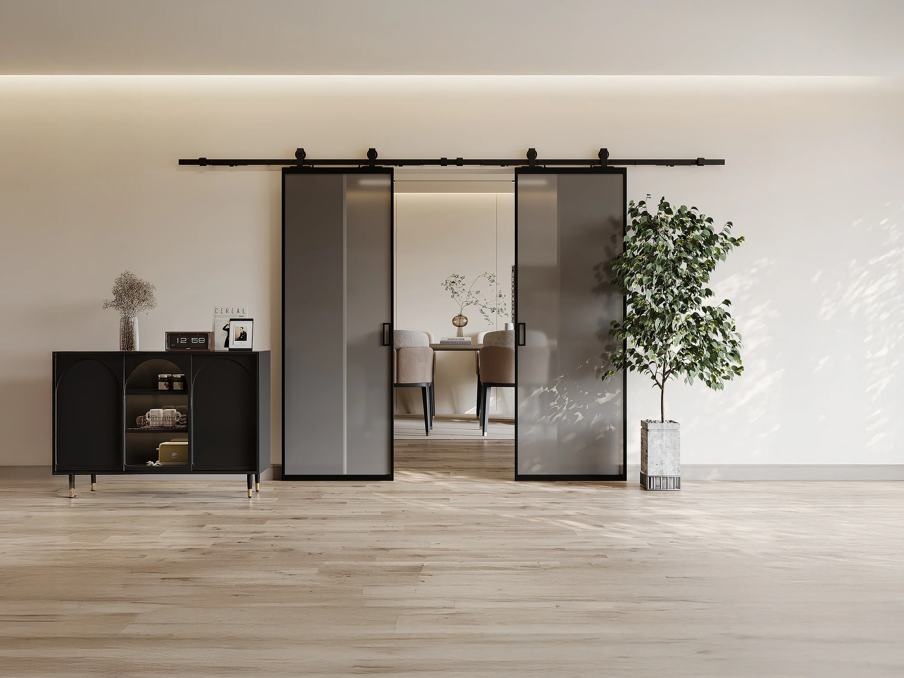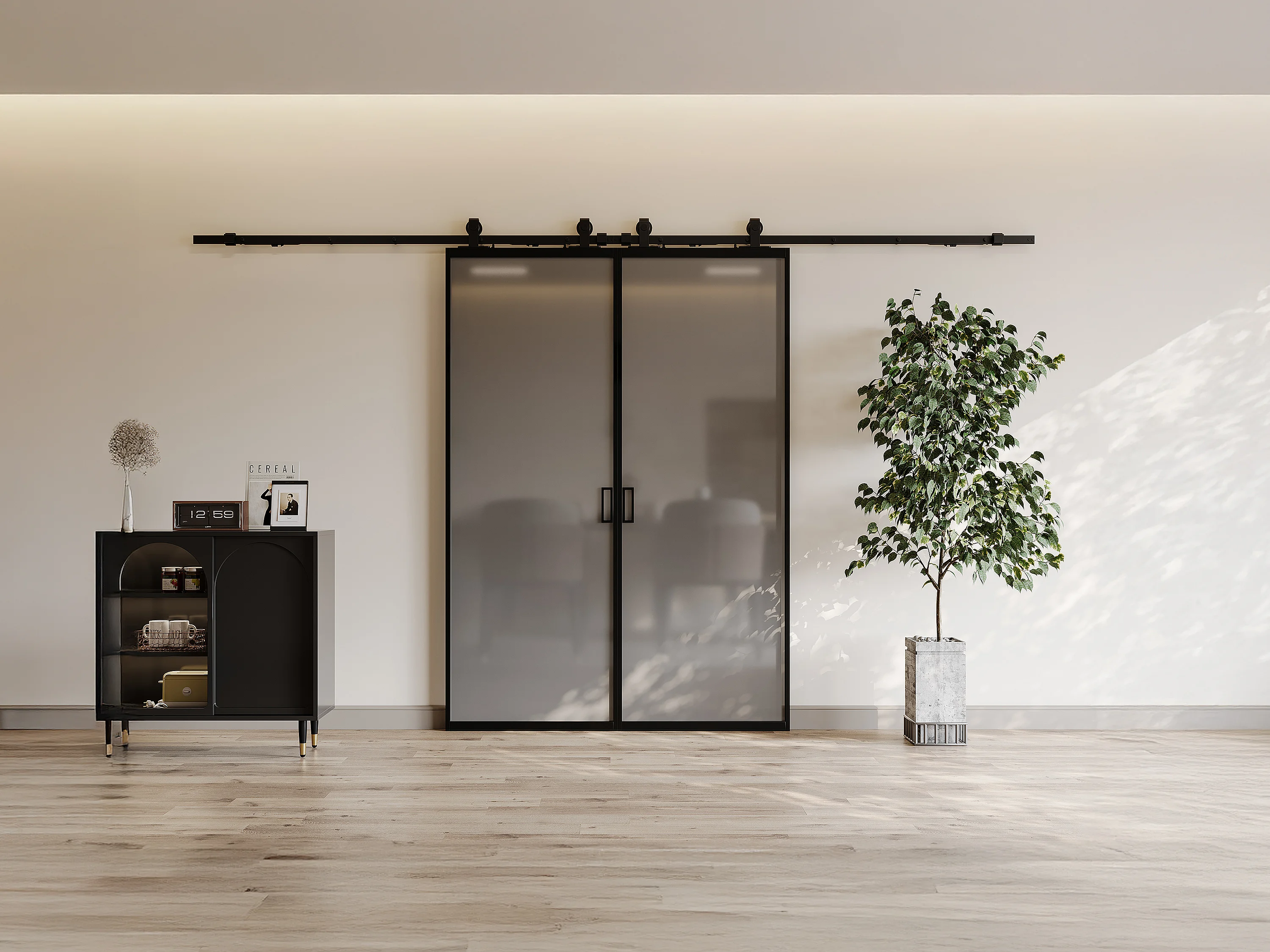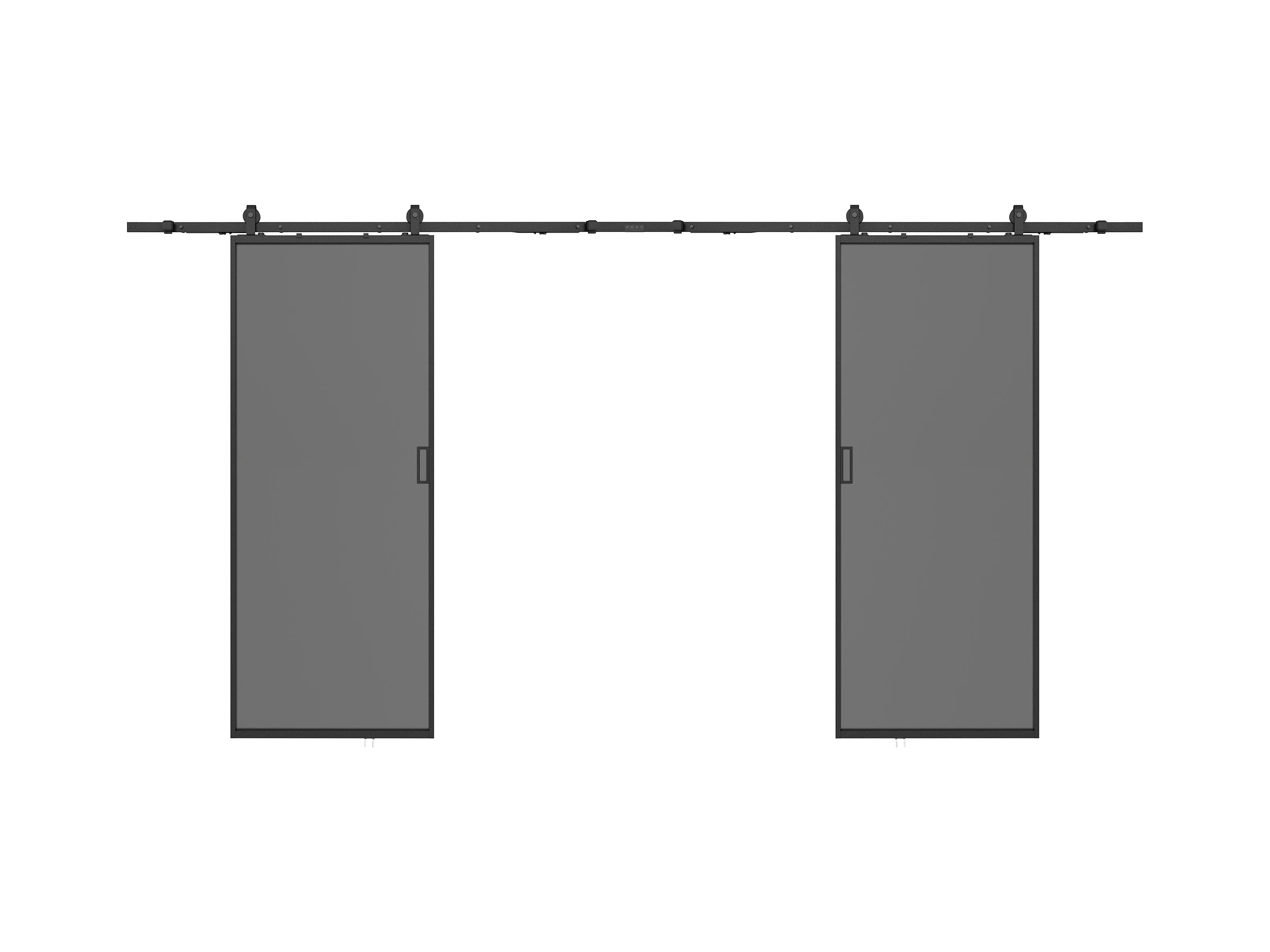Porte coulissante double avec système en applique - aluminium et verre trempé fumé dépoli - 2 x H205 x L73 cm - LINCI II