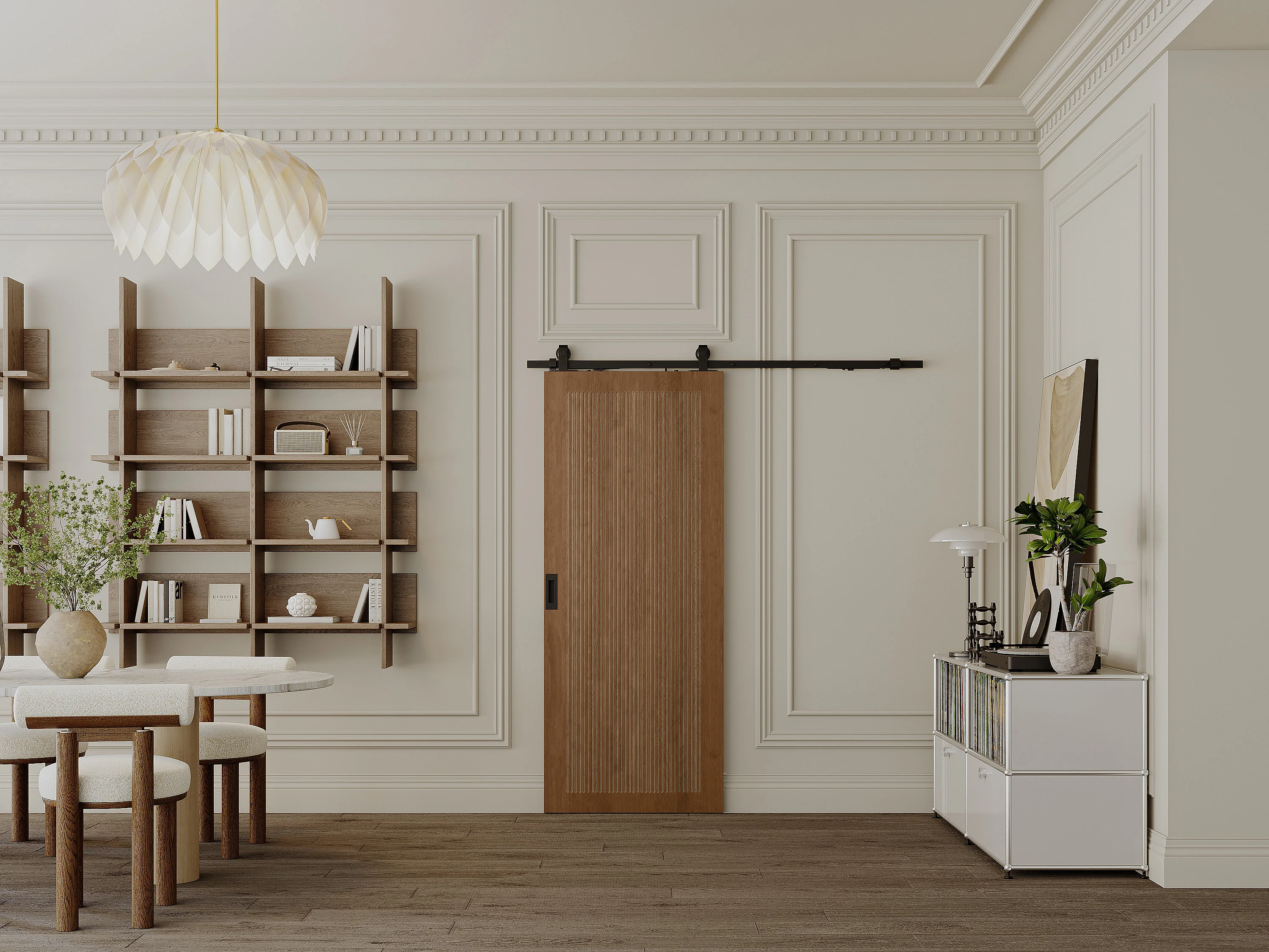 Porte coulissante avec système en applique en MDF et bois - naturel foncé - H205 x L83 cm - SANDORA
