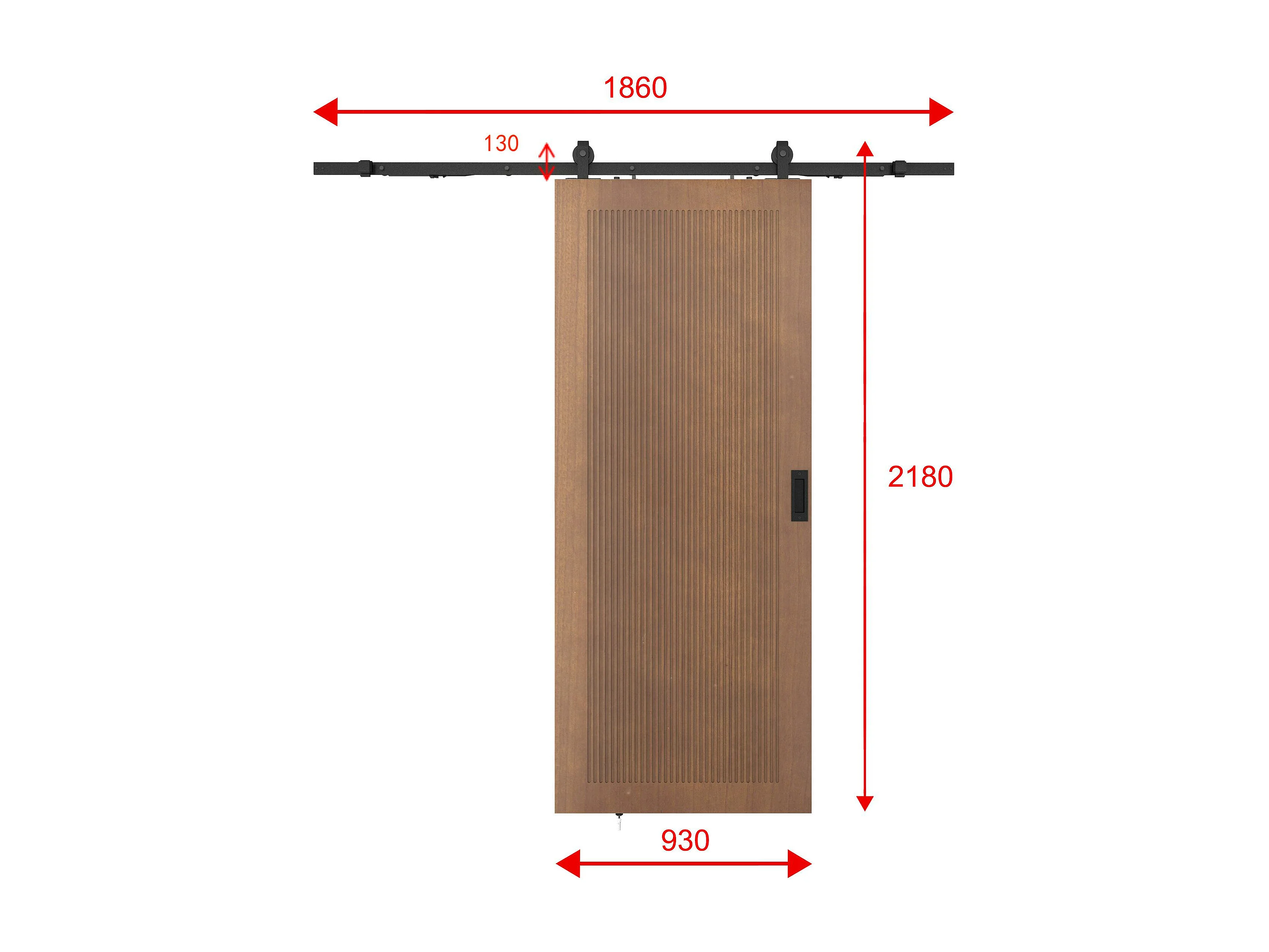 Porte coulissante avec système en applique en MDF et bois - naturel foncé - H205 x L93 cm - SANDORA