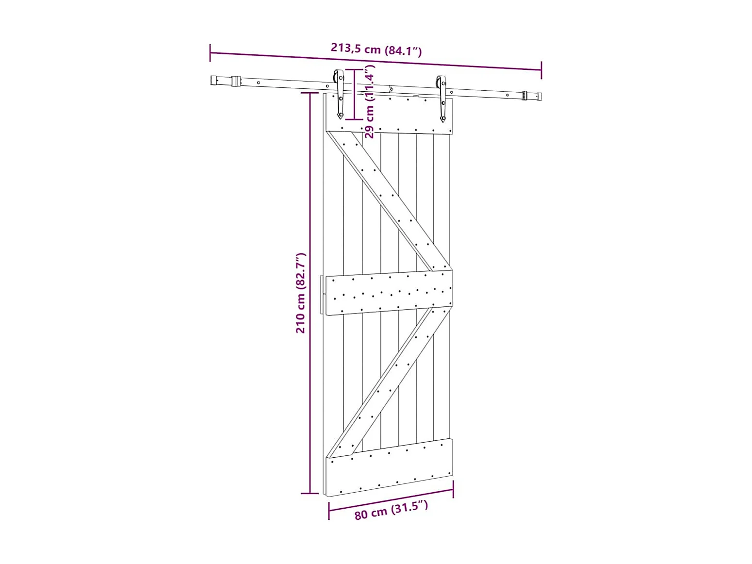 Porte coulissante et kit de quincaillerie 80x210 cm pin massif