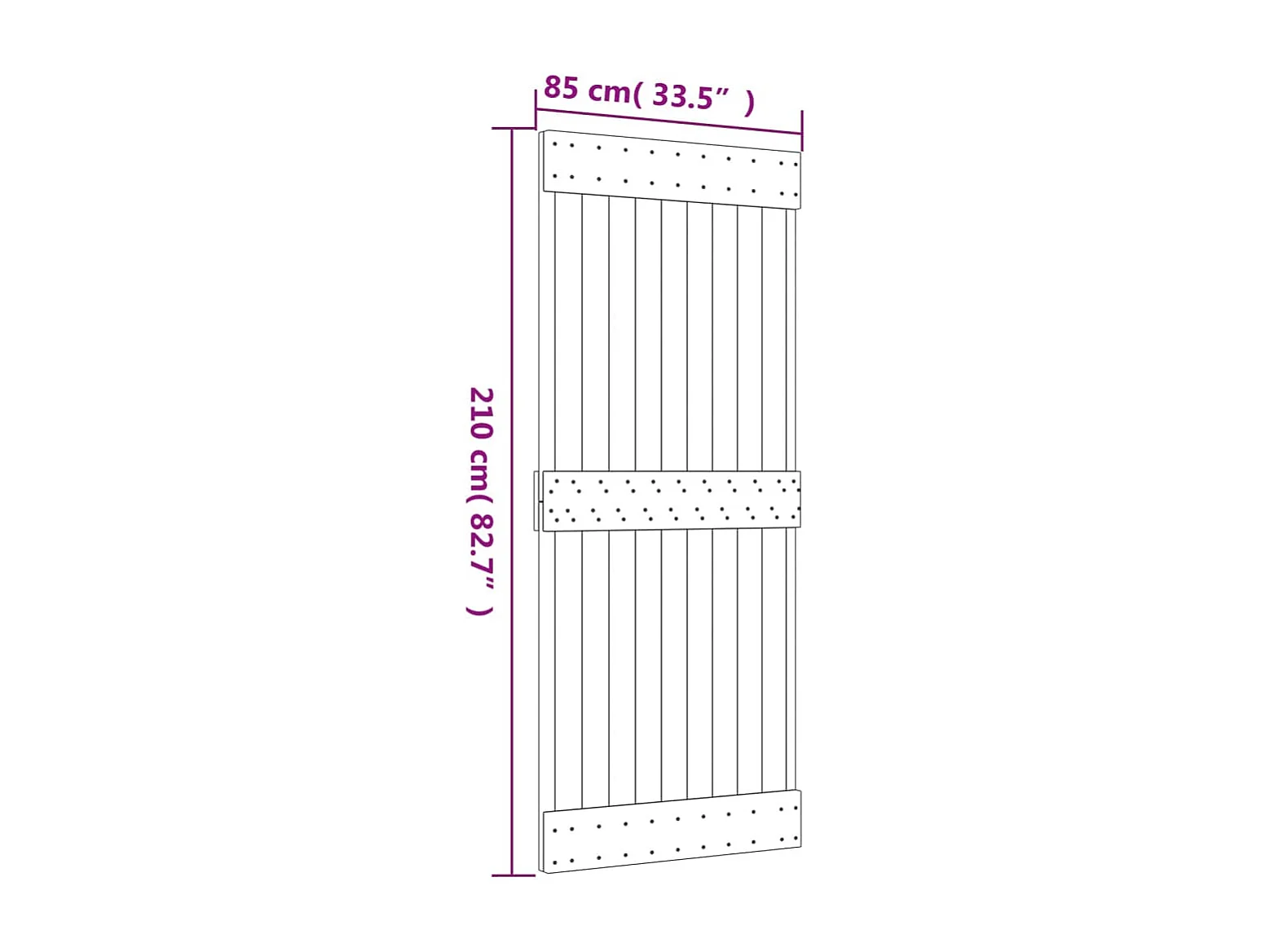 Porte coulissante avec quincaillerie, 85x210 cm, en pin massif.