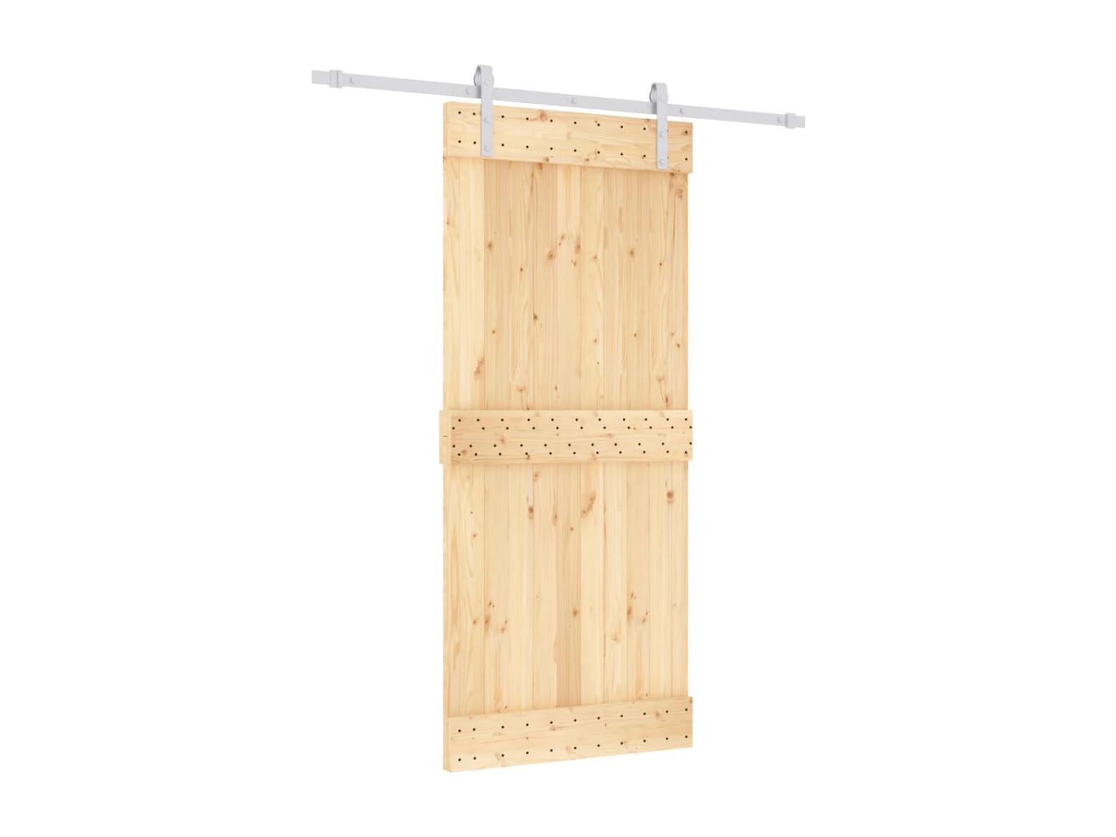 Porte coulissante et kit de quincaillerie 90x210 cm pin massif FR950042