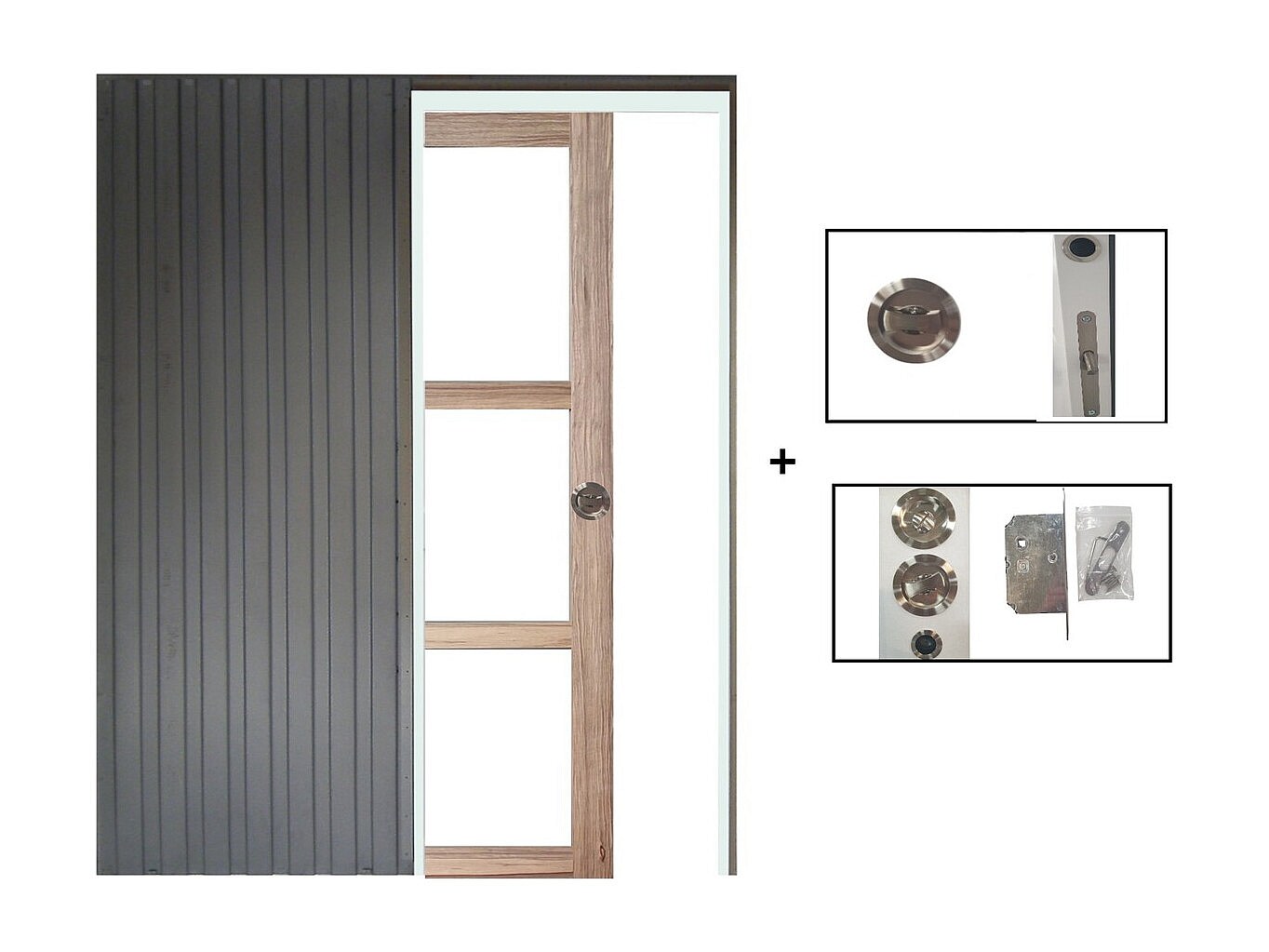 Porte Coulissante Frake Vitrage Transparent H204 X L73 + Système à Galandage (sans Kit Finition) Gd Menuiseries