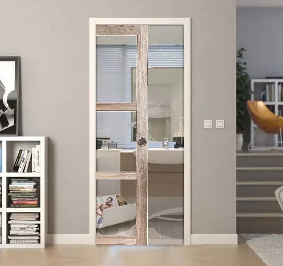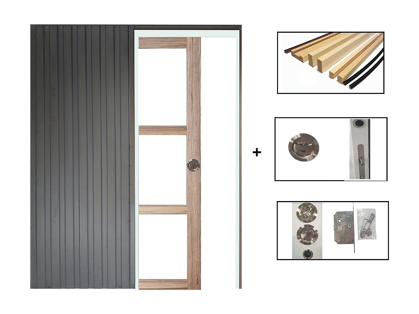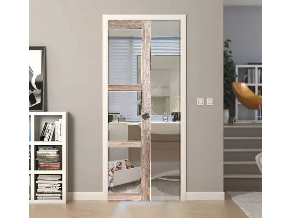 Porte Coulissante Frake Vitrage Transparent H204 X L73 + Systeme De Galandage Et Kit De Finition Inclus Gd Menuiseries