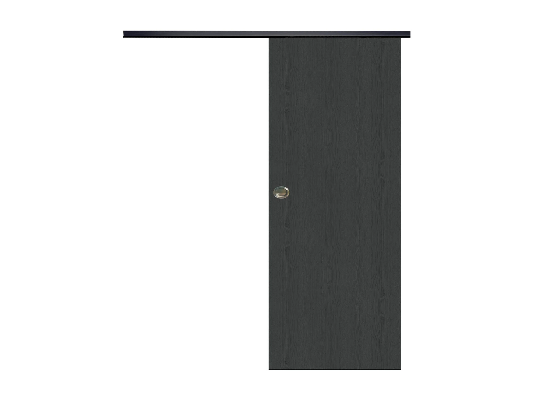 Porte Coulissante Grey Oak H204 X L93 + Rail Alu Bandeau Noir Et Coquilles Gd Menuiseries