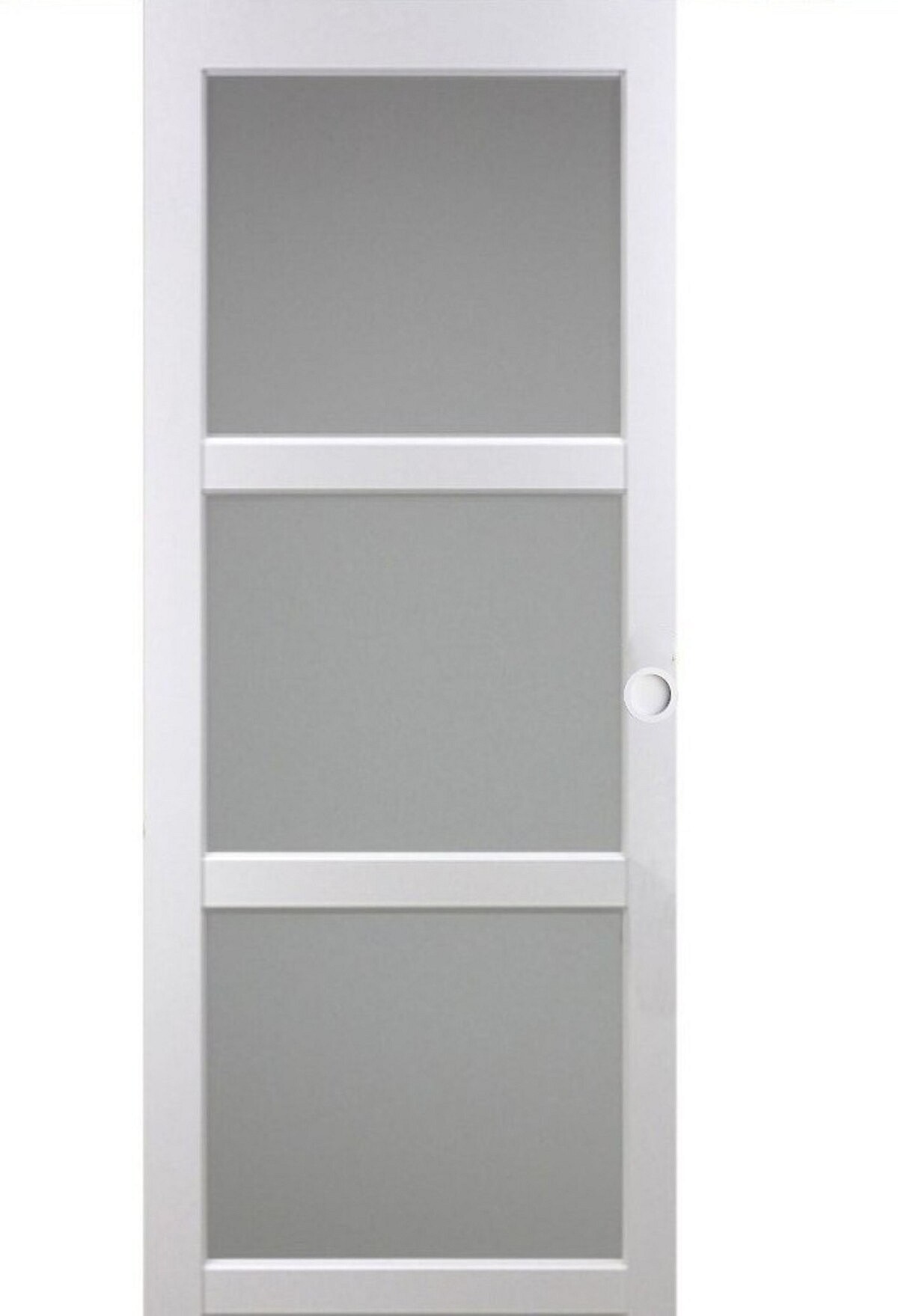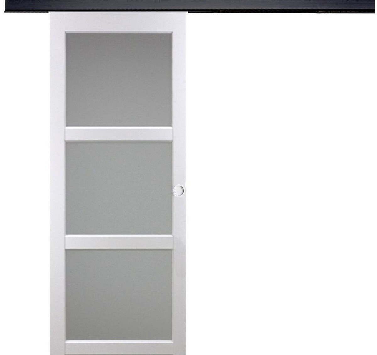 Porte Coulissante Kenya Blanc Vitree H204 X L93 + Rail Alu Bandeau Noir Et 2 Coquilles Blanc Gd Menuiseries