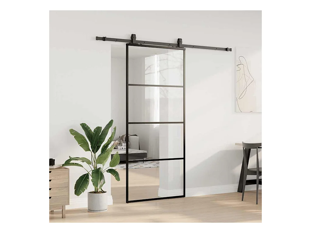 Porte coulissante kit de quincaillerie noir 90x205 cm verre ESG