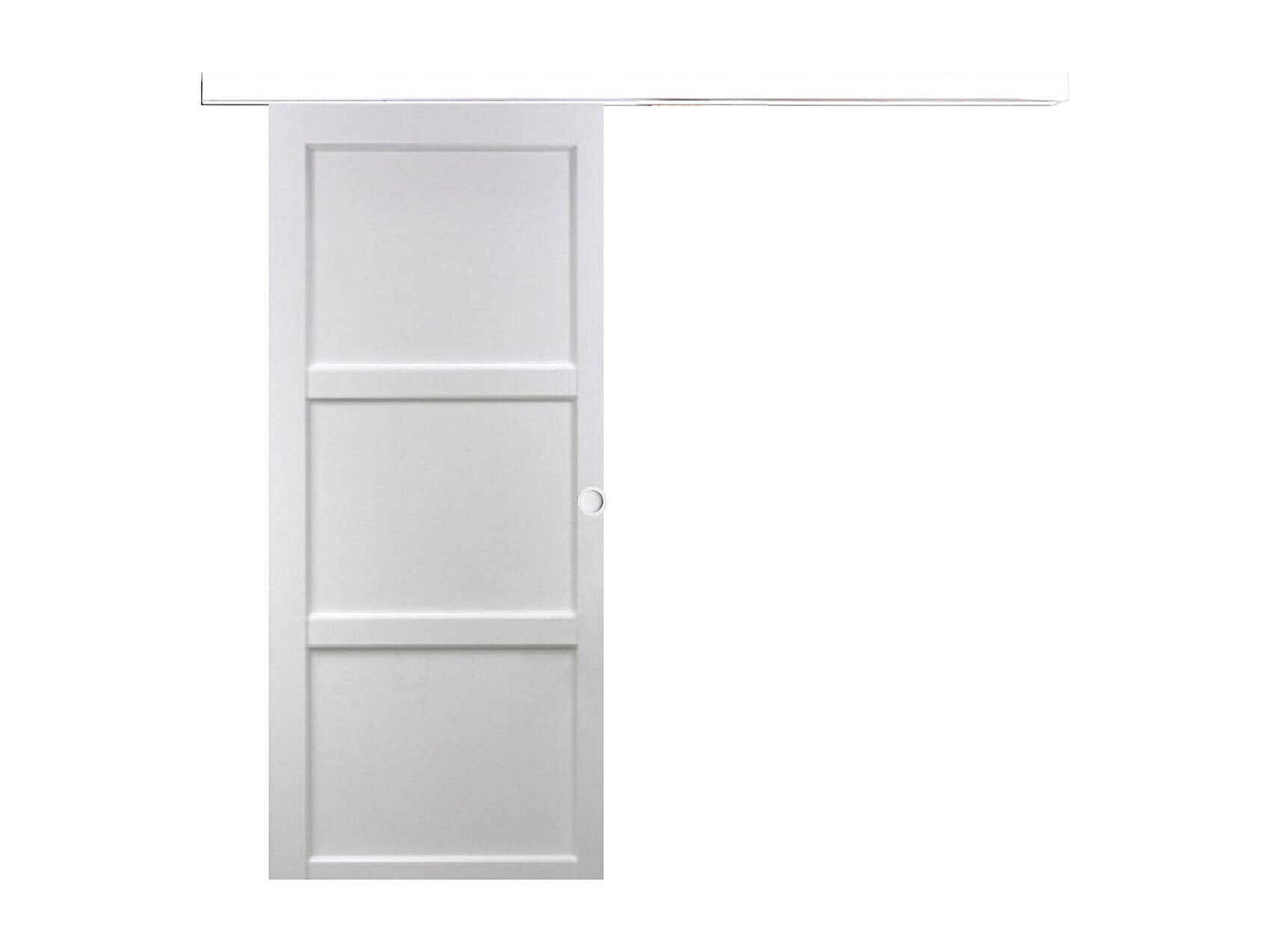 Porte Coulissante Korya Blanc 3 Panneaux H204 X L73 + Rail Alu Bandeau Blanc Et Coquilles Blanc Gd Menuiseries