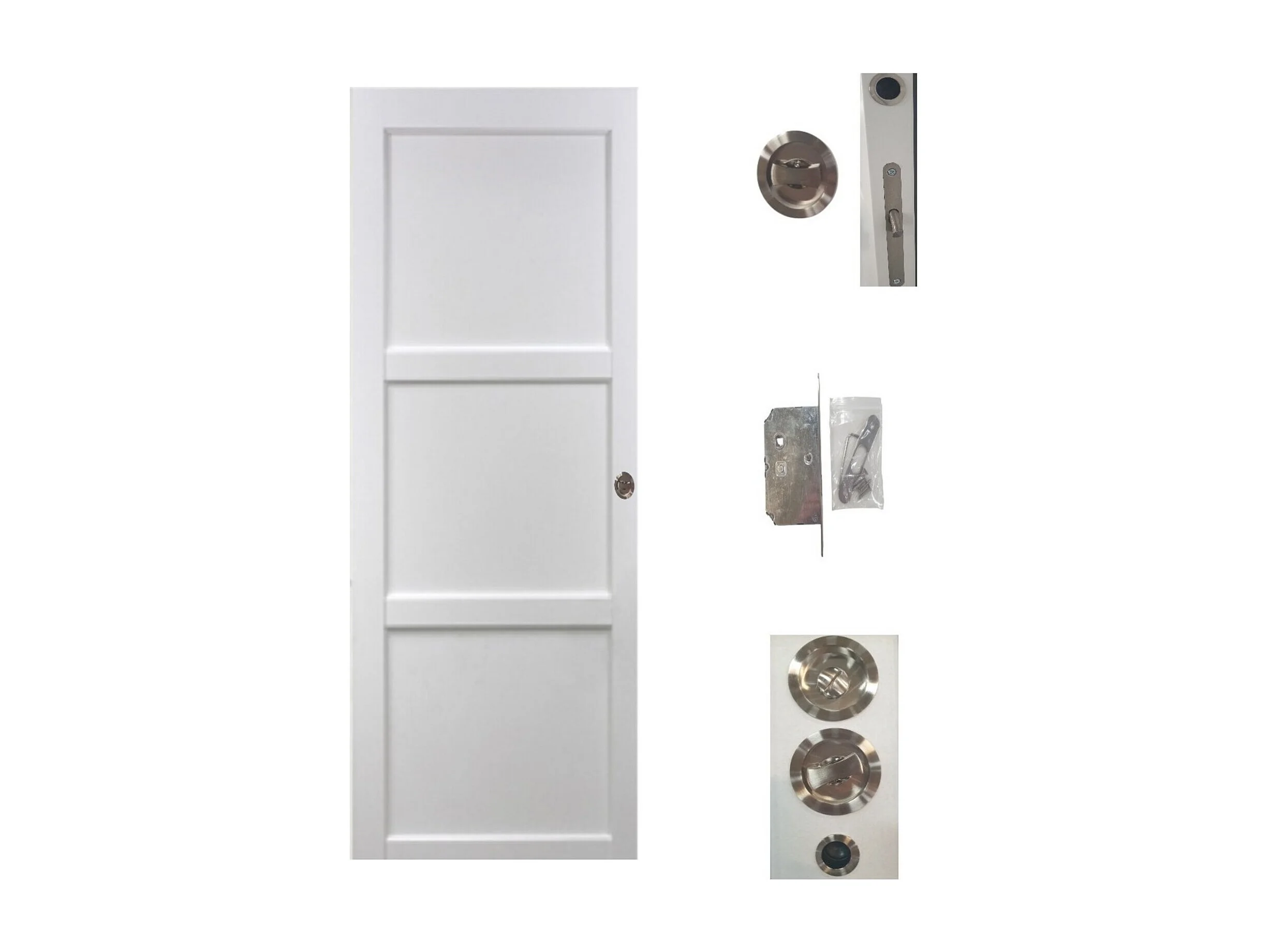 Porte Coulissante Korya Blanc 3 Panneaux H204 X L93 + Systeme De Galandage Et Kit De Finition Inclus Gd Menuiseries