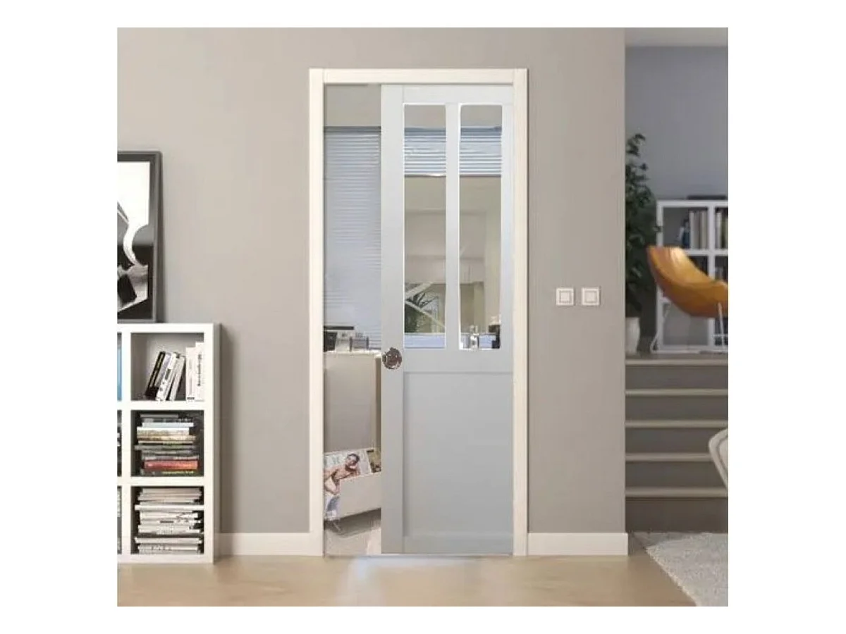 Porte Coulissante Atelier Blanc H204 X L73 + Systeme Galandage Et Kit De Finition Inclus Gd Menuiseries
