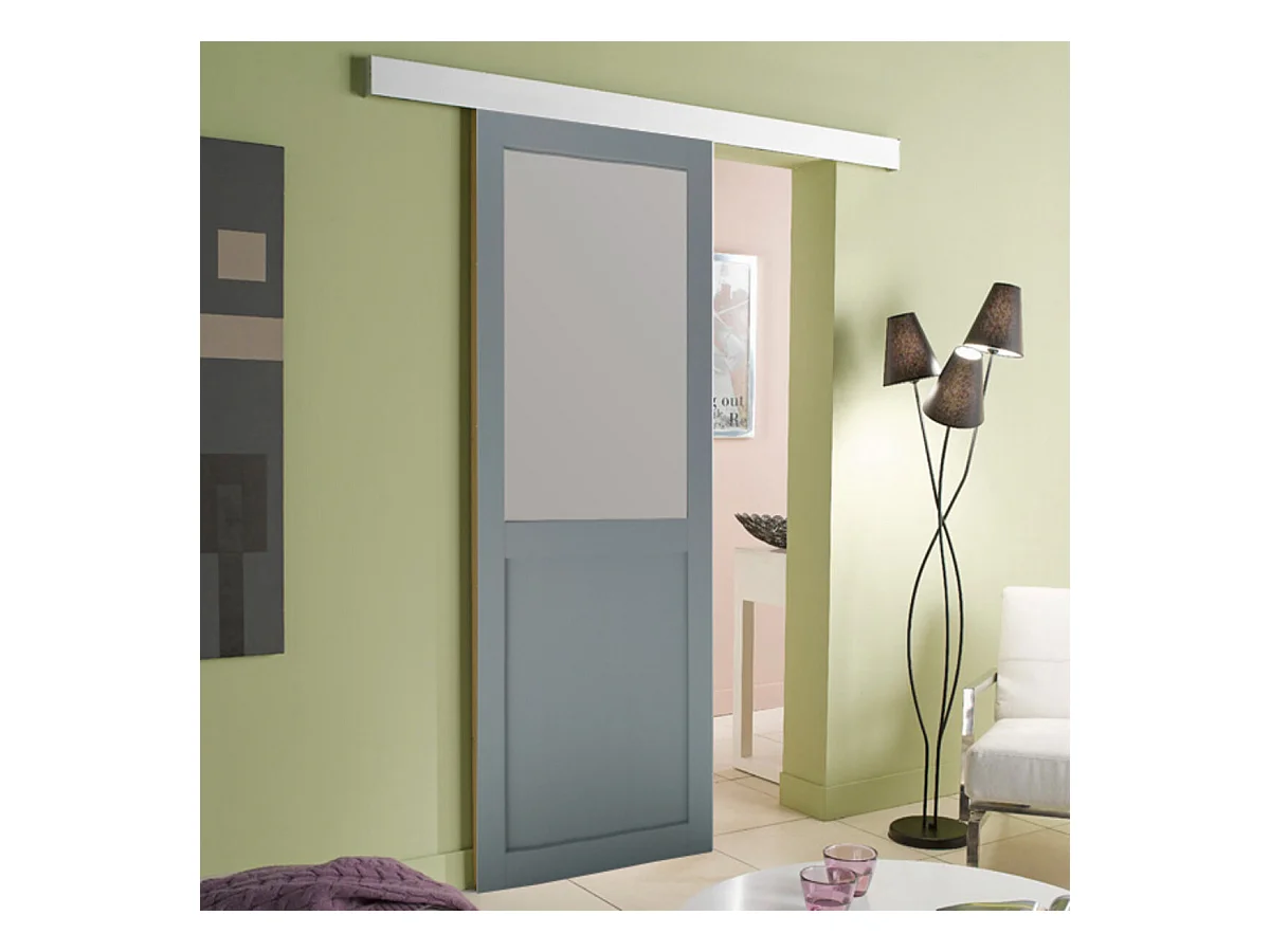 Porte Coulissante Athena Ral7035 Vitree H204 X L83 + Rail Alu Bandeau Blanc Et Coquilles Gd Menuiseries