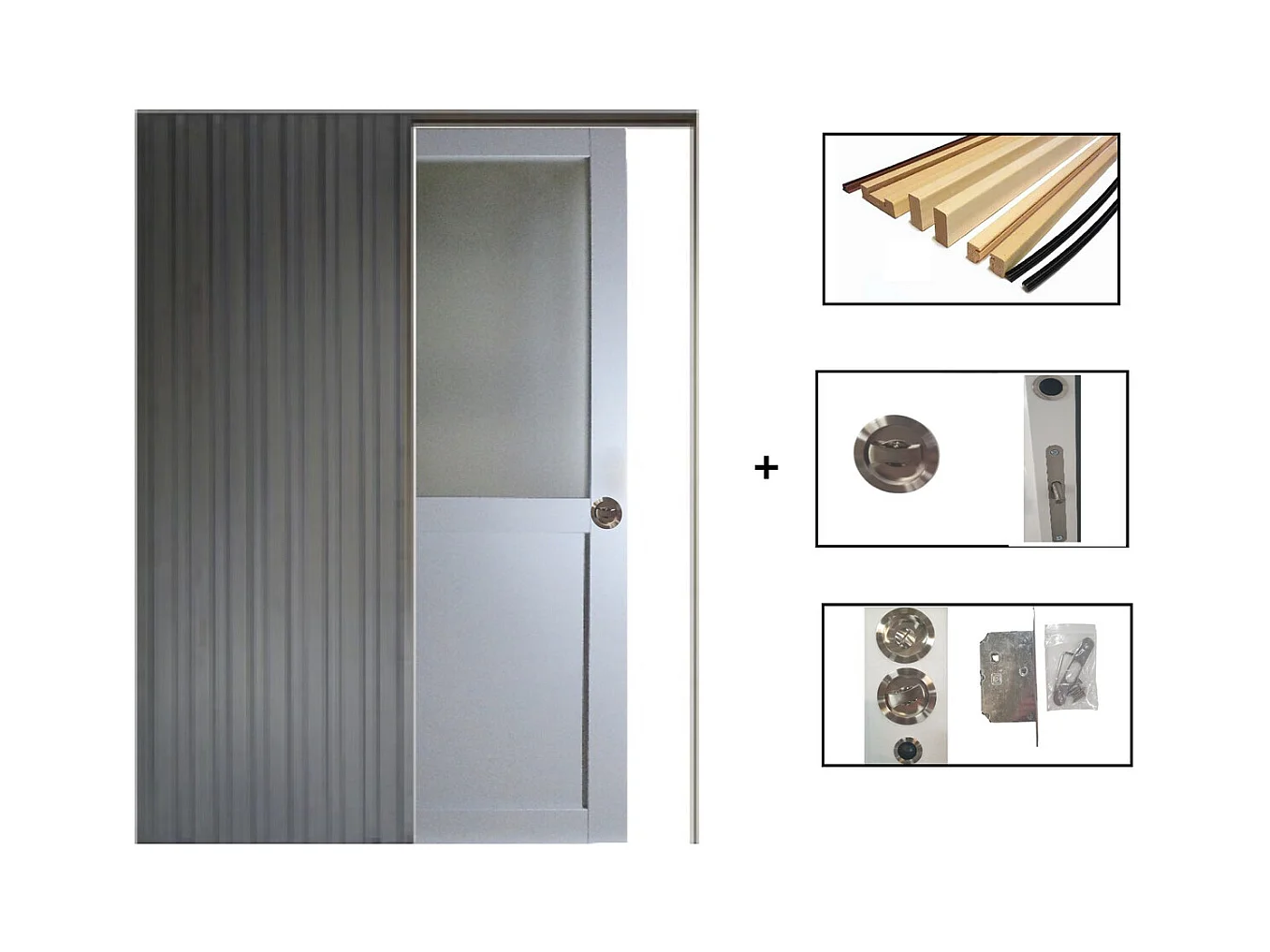 Porte Coulissante Athena Ral7035 Vitree H204 X L83 + Systeme De Galandage Et Kit De Finition Inclus Gd Menuiseries