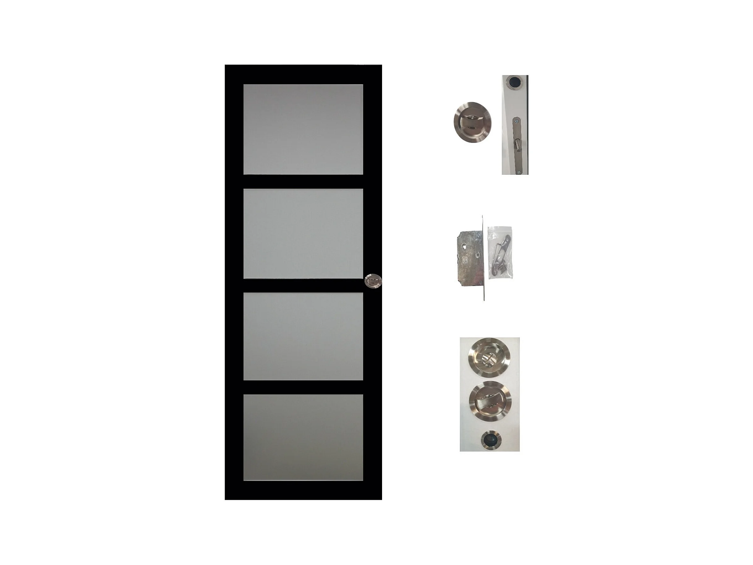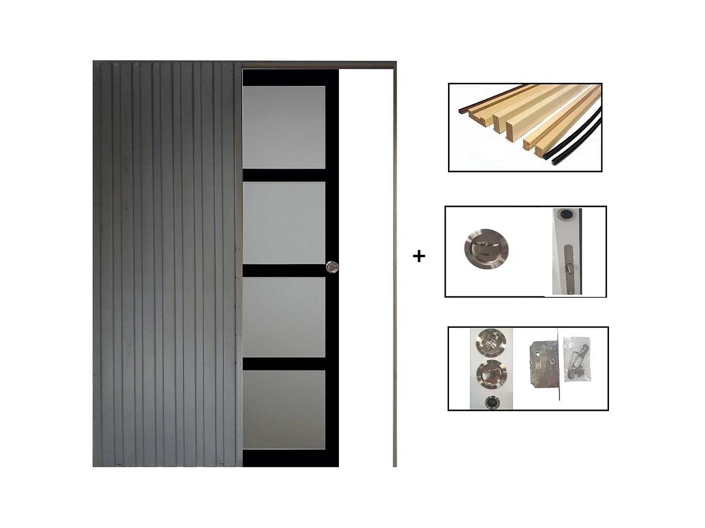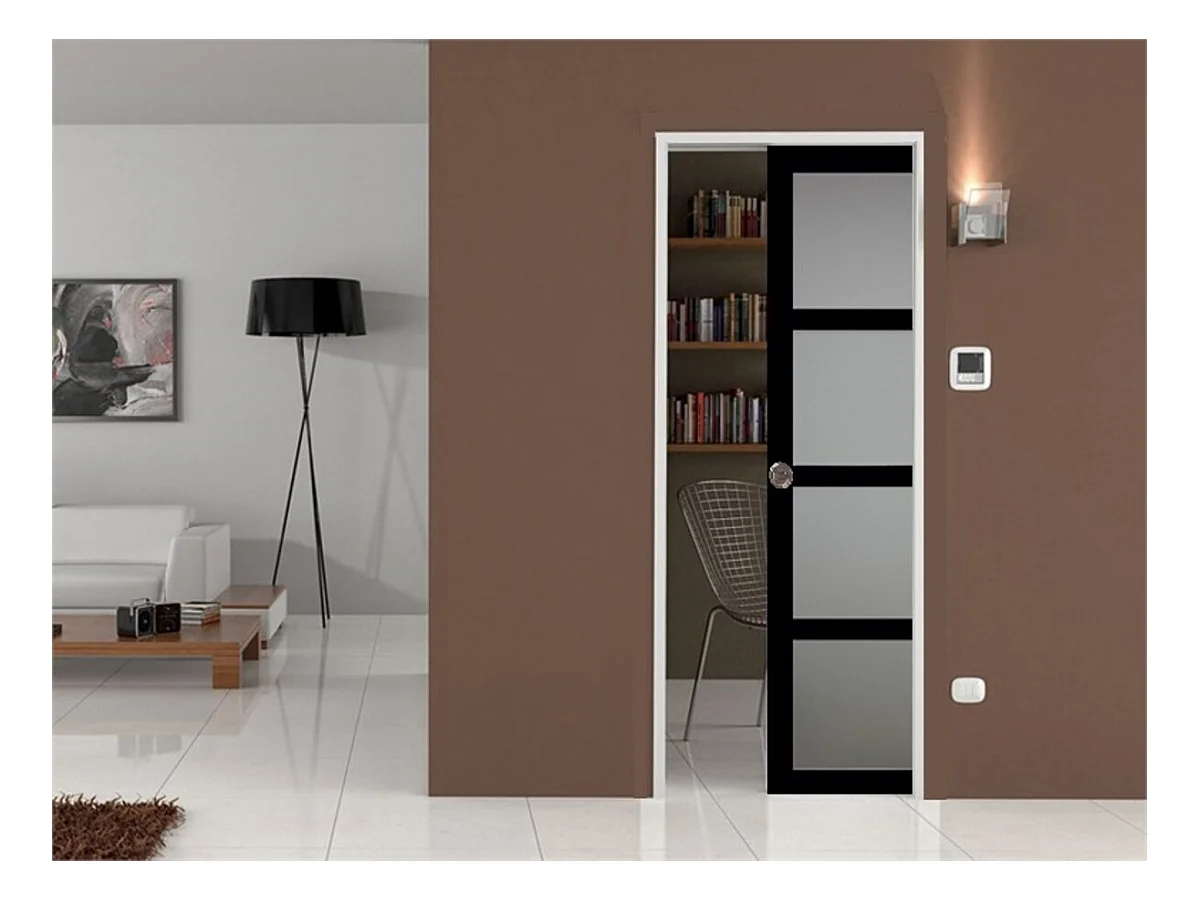 Porte Coulissante Telia Noir Vitree H204 X L73 + Systeme Galandage Et Kit De Finition Inclus Gd Menuiseries