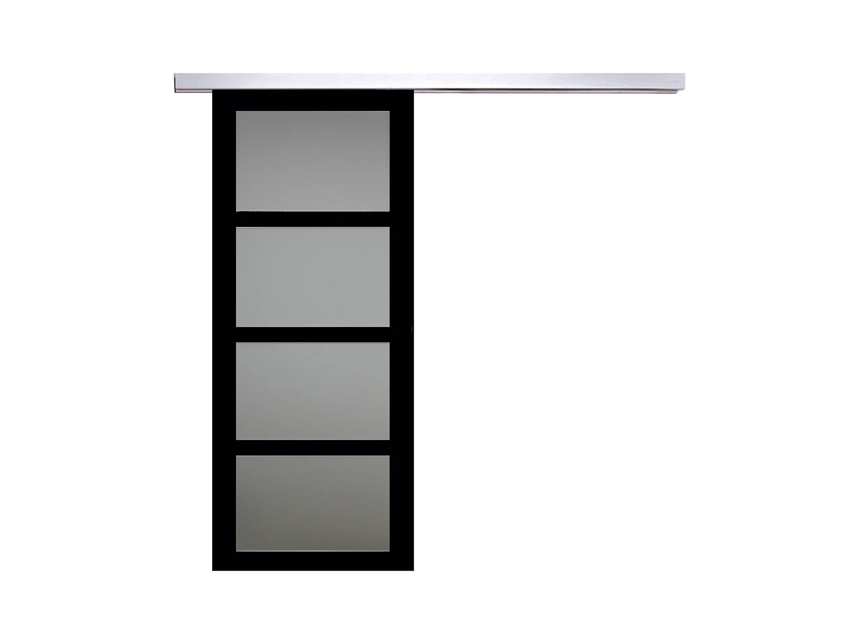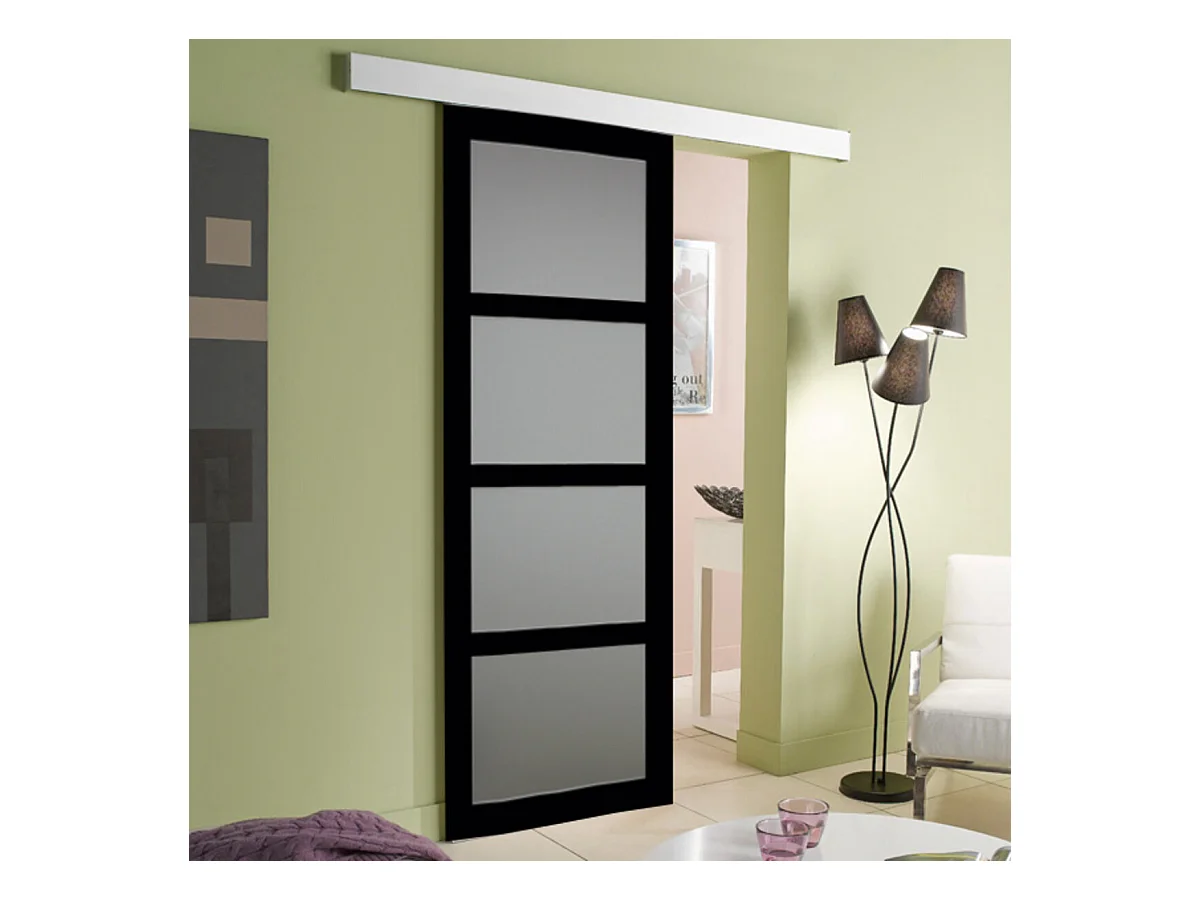 Porte Coulissante Telia Noir Vitree H204 X L83 + Rail Alu Gd Menuiseries