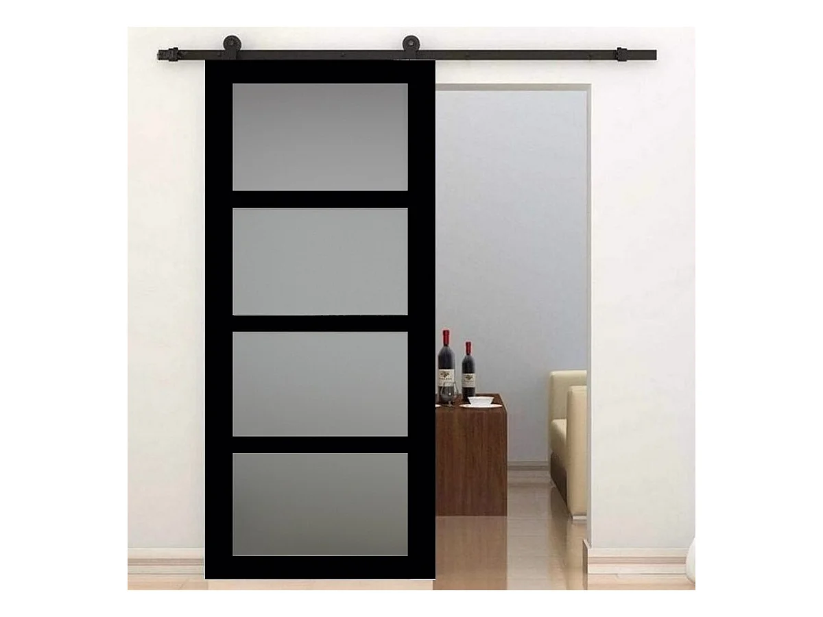 Porte Coulissante Telia Noir Vitree H204 X L83 + Rail A Roulettes Et Coquilles Gd Menuiseries
