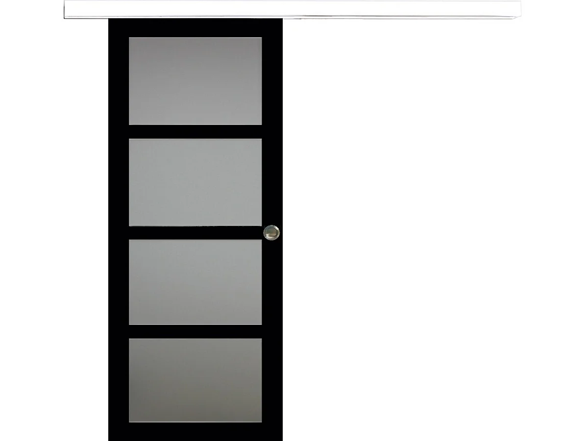 Porte Coulissante Telia Noir Vitrée H204 X L83 Cm, Rail Alu Bandeau Blanc, Coquilles Gd Menuiseries