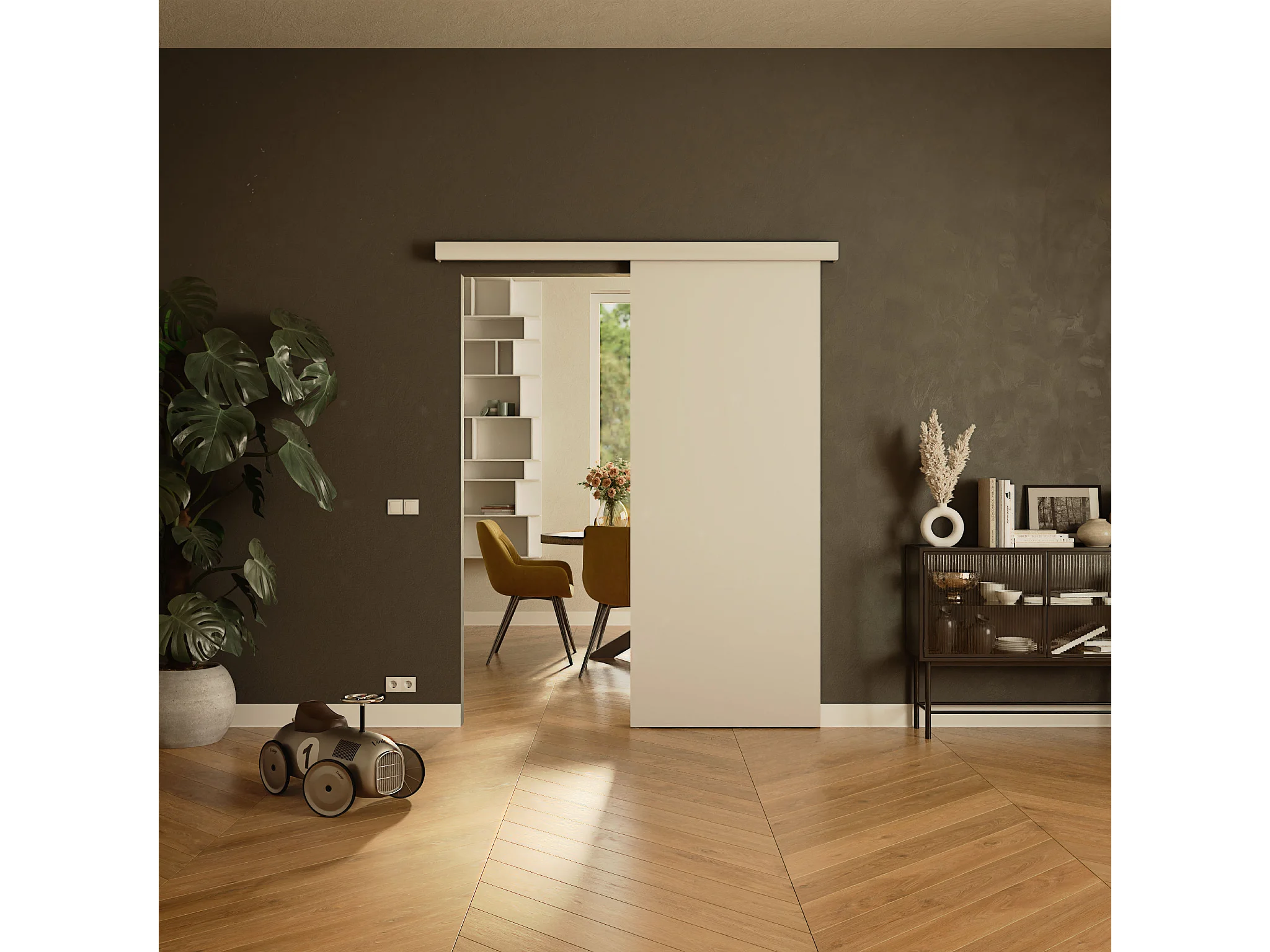 Porte Coulissante non percée avec Rail - Prépeinte Plane 83 cm