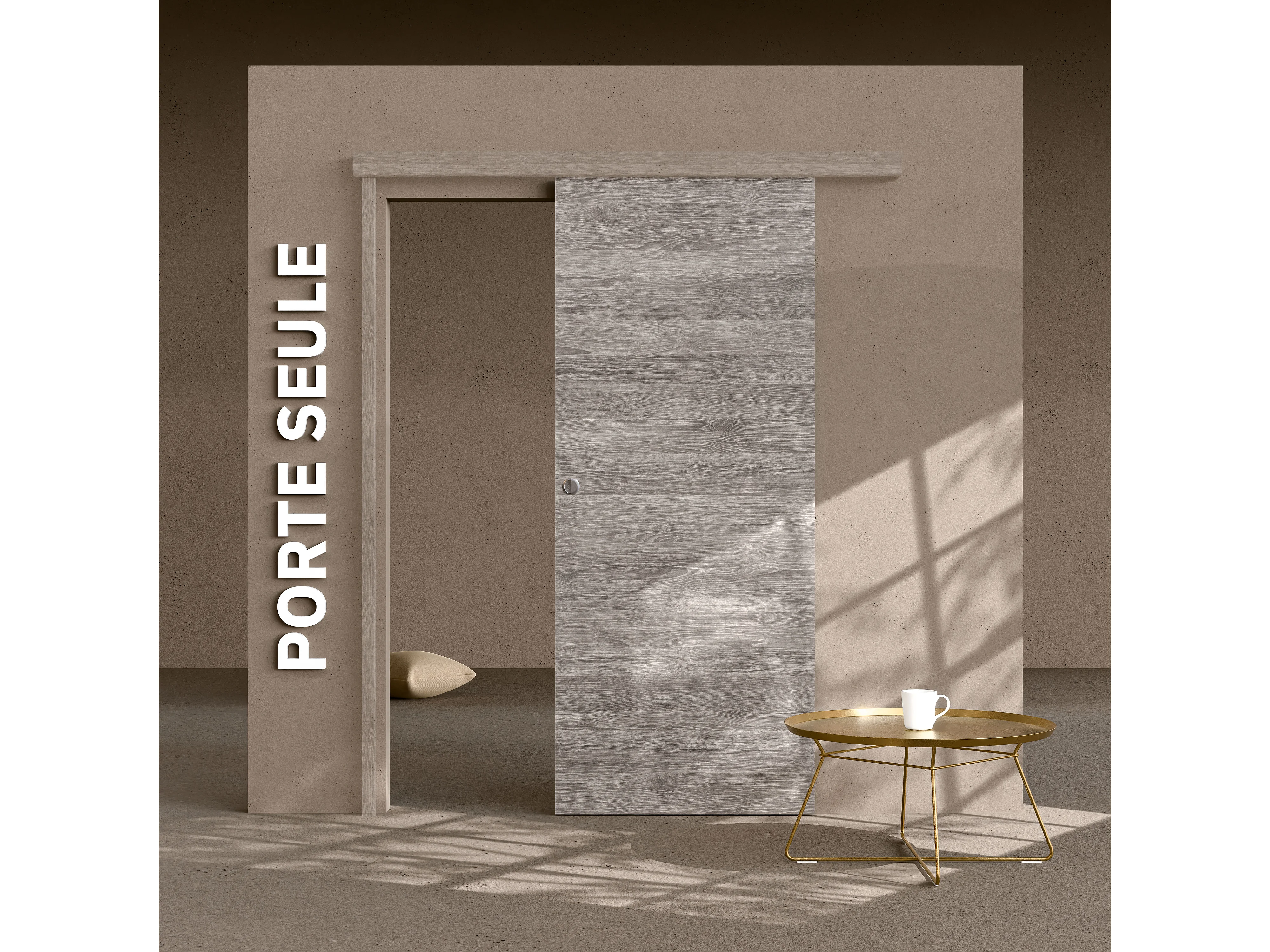 Porte Coulissante Seule - Gris blanchi 83 cm
