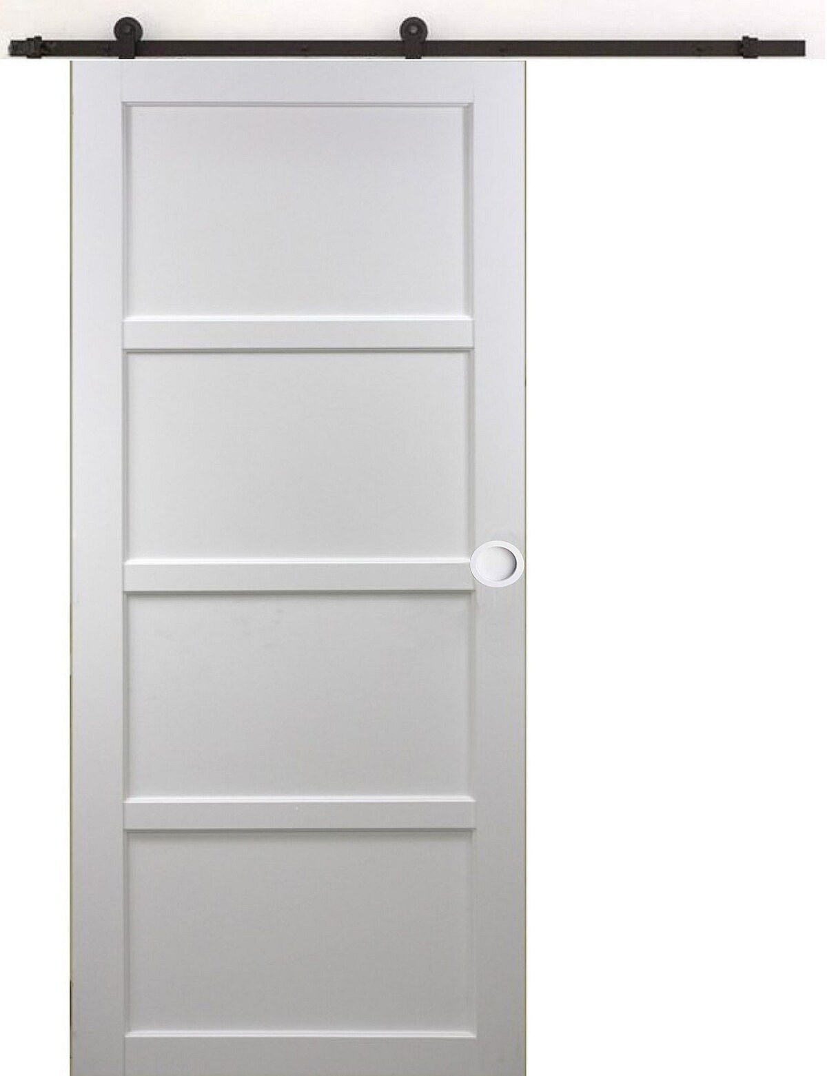 Porte Coulissante Tamera Blanc 4 Panneaux H204 X L63 + Rail A Roulettes Et Coquilles Blanc Gd Menuiseries
