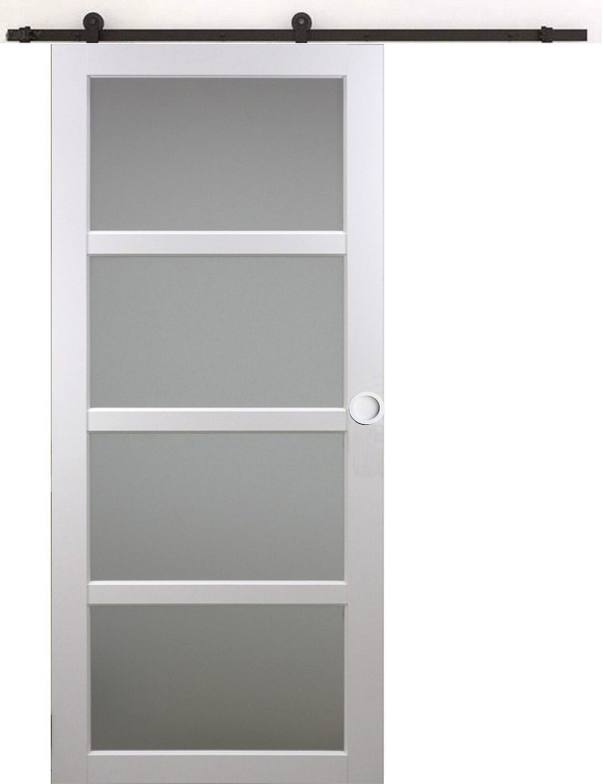 Porte Coulissante Tana Blanc Vitree H204 X L63 + Rail A Roulettes Et Coquilles Blanc Gd Menuiseries