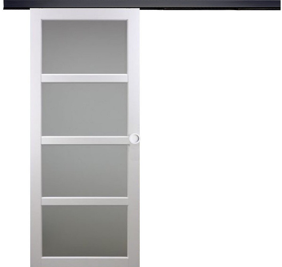 Porte Coulissante Tana Blanc Vitree H204 X L73 + Rail Alu Bandeau Noir Et Coquilles Blanc Gd Menuiseries