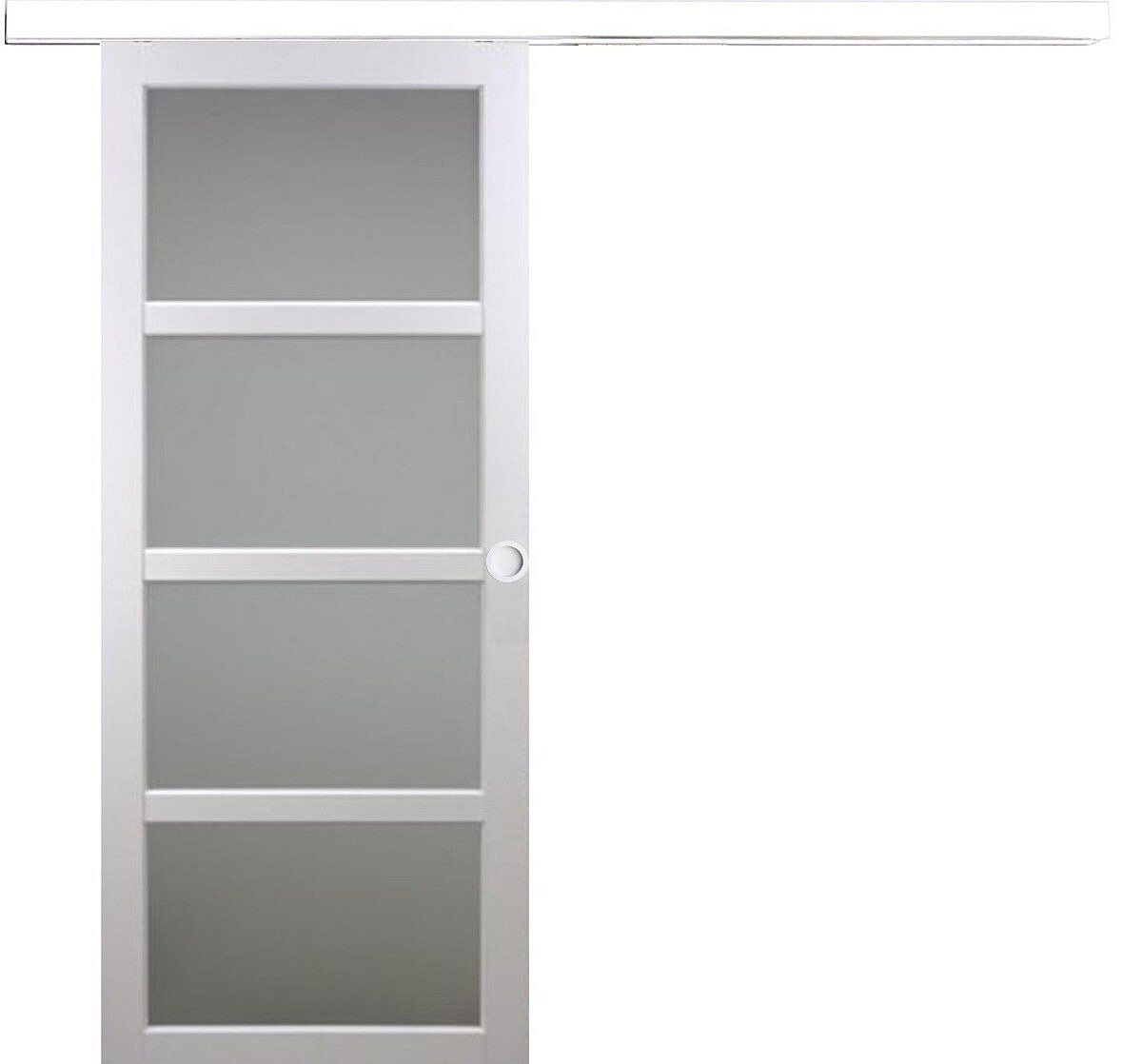Porte Coulissante Tana Blanc Vitree H204 X L83 + Rail Alu Bandeau Blanc Et Coquilles Blanc Gd Menuiseries