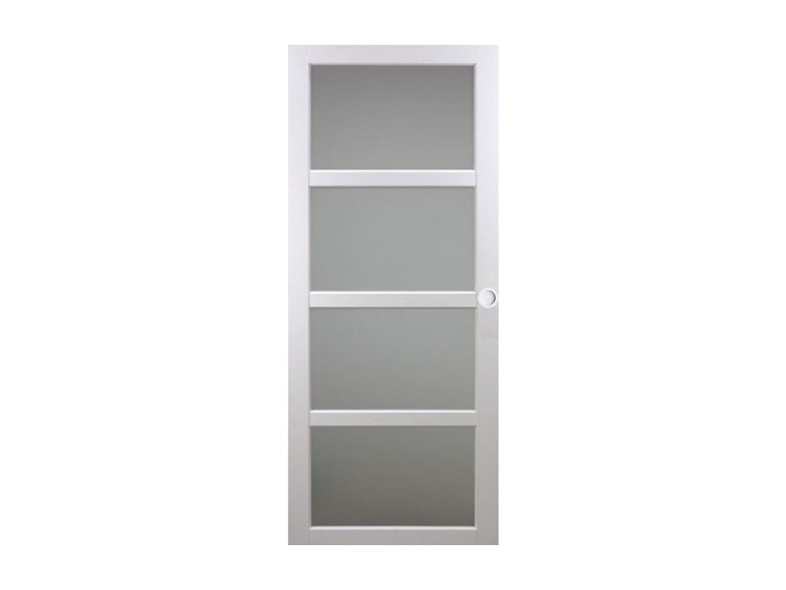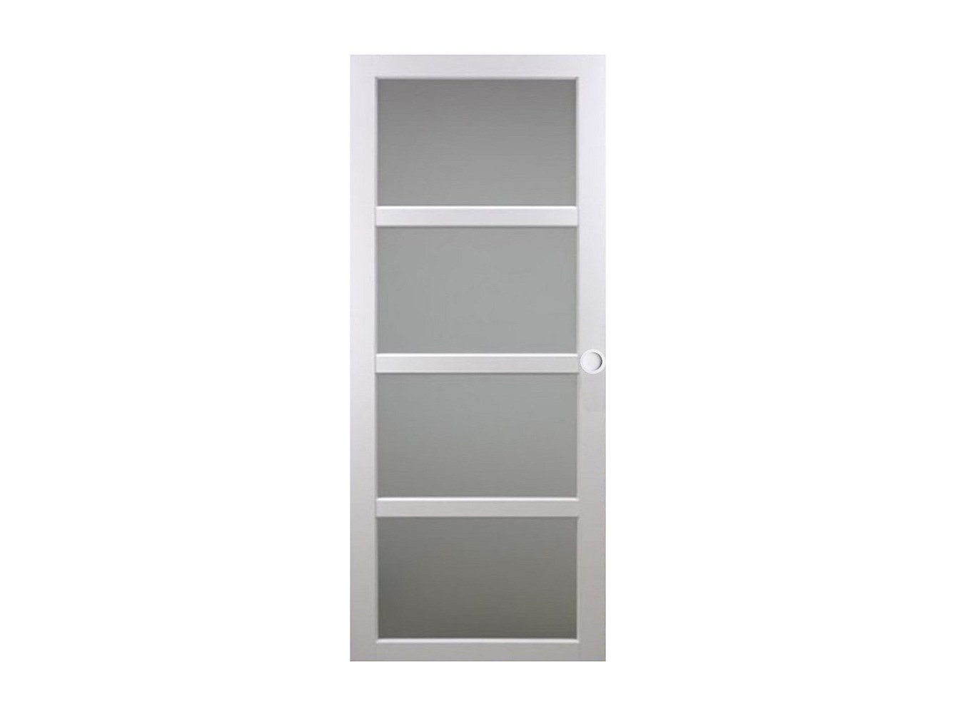 Porte Coulissante Tana Blanc Vitree H204 X L93 + Rail Alu Bandeau Blanc Et Coquilles Blanc Gd Menuiseries