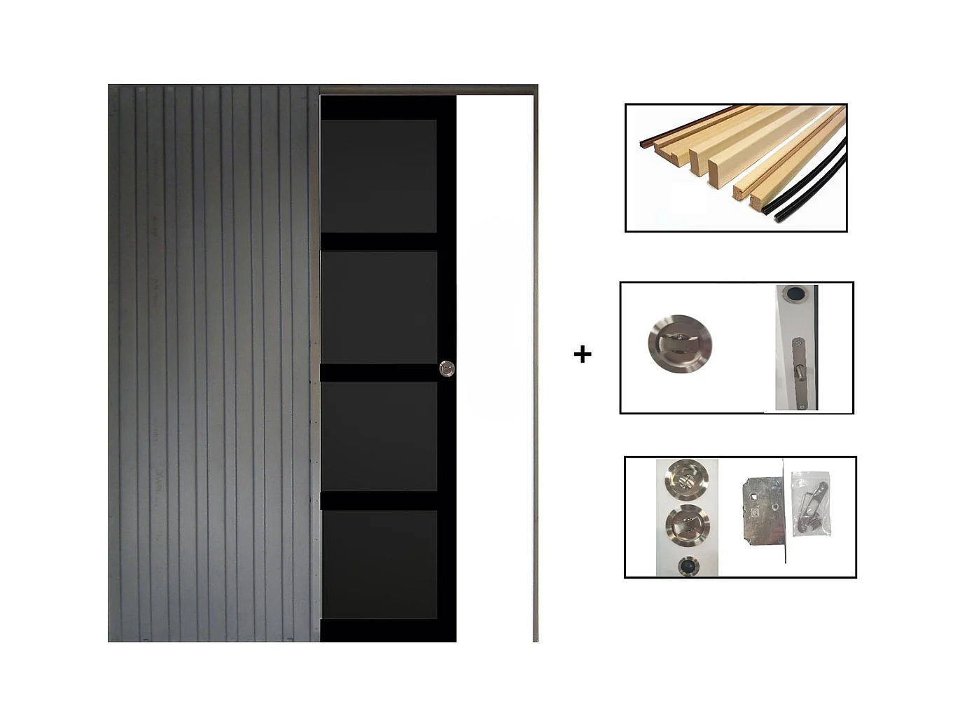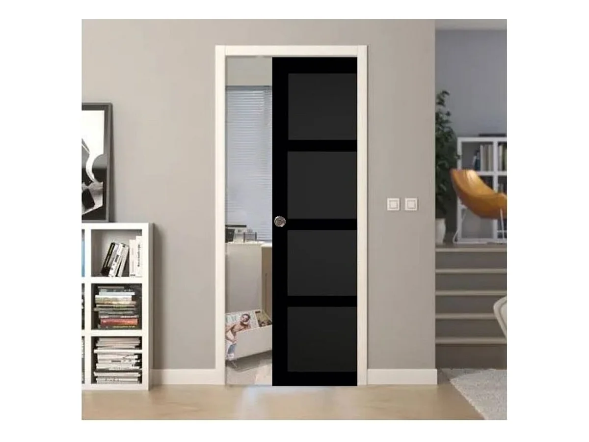 Porte Coulissante Telia Noir 4 Panneaux H204 X L73 + Systeme De Galandage Et Kit Finition Inclus Gd Menuiseries