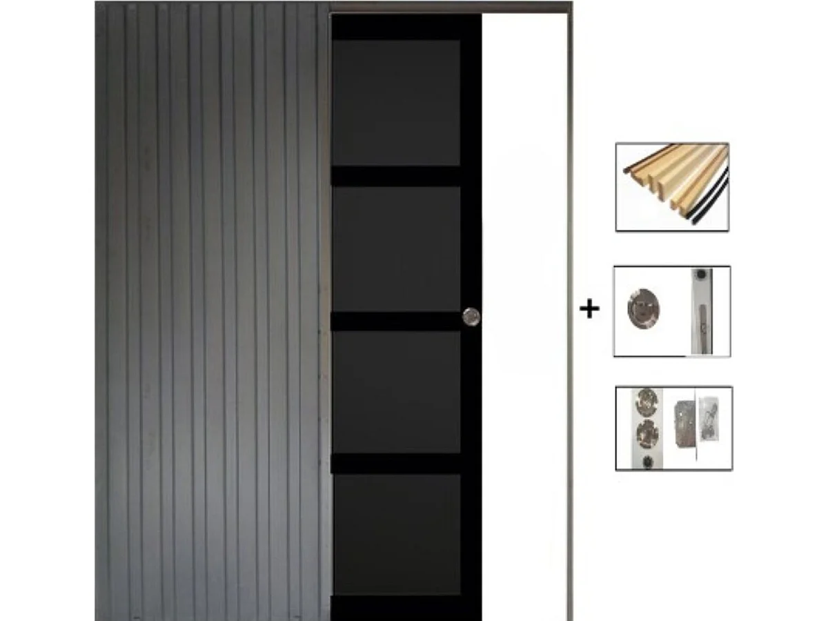 Porte Coulissante Telia Noir 4 Panneaux H204 X L73, Galandage Et Kit Finition Gd Menuiseries