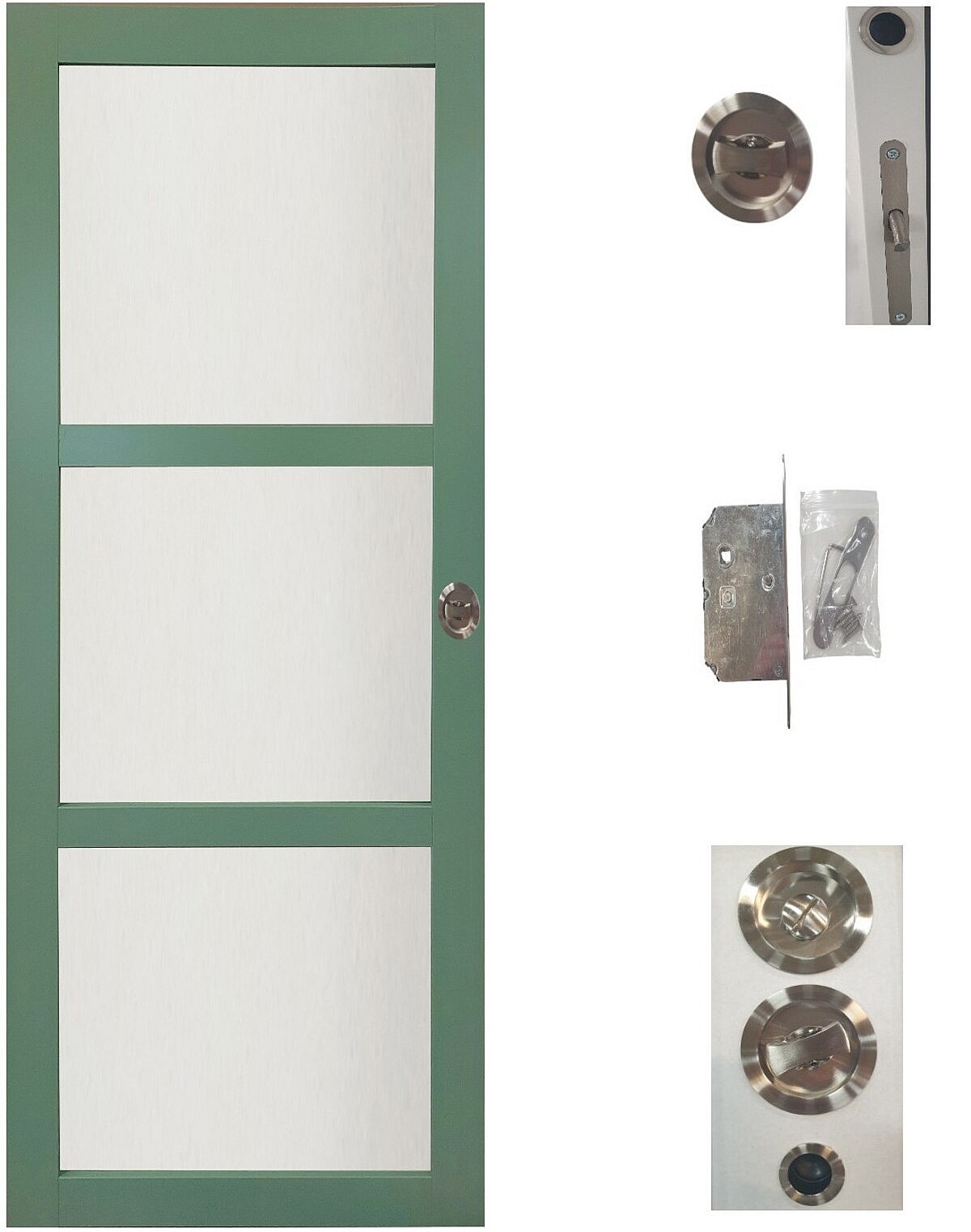 Porte Coulissante Vert Ral 6021 Vitree H204 X L83 + Système à Galandage (sans Kit Finition) Gd Menuiseries