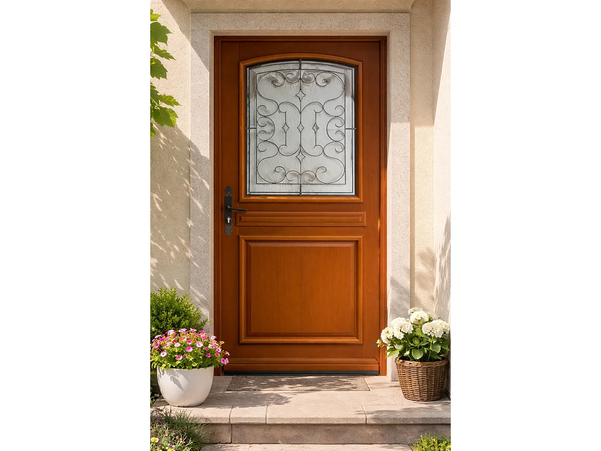 Porte D'entrée Bois Vitrée Perault, H.215xl.90 Côte Tableau P.droit Gd Menuiseries
