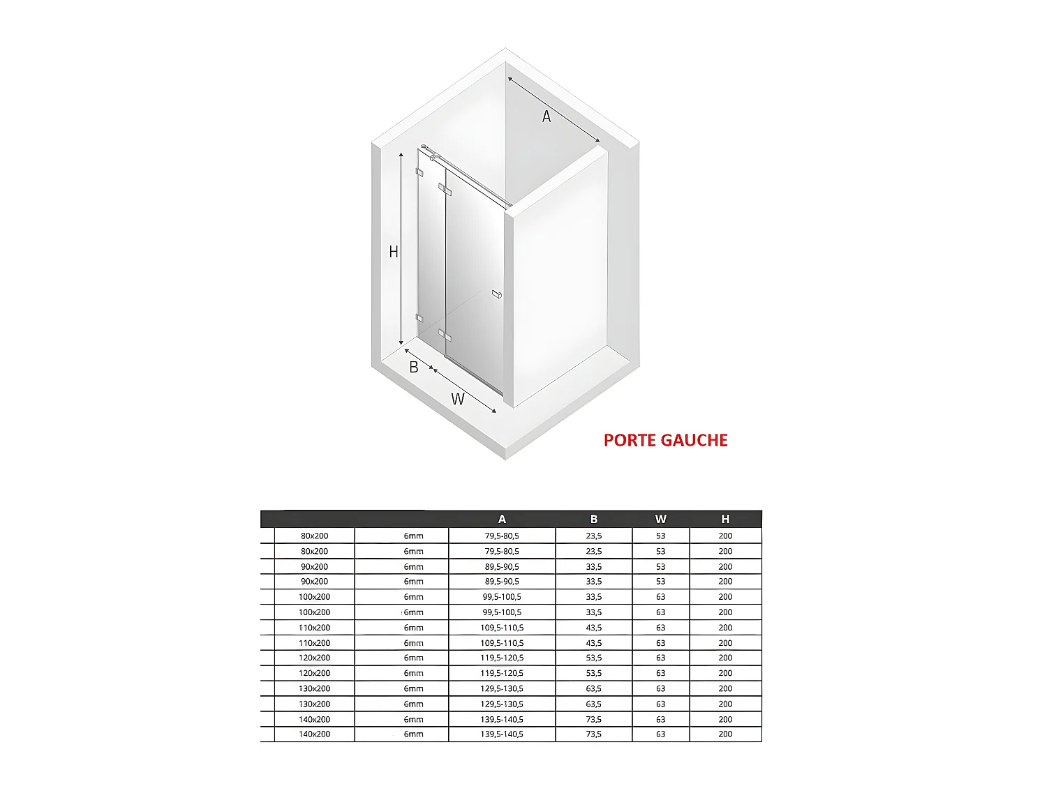 Porte de douche 120 cm chrome pivotante gauche MAJORQUE CHROME