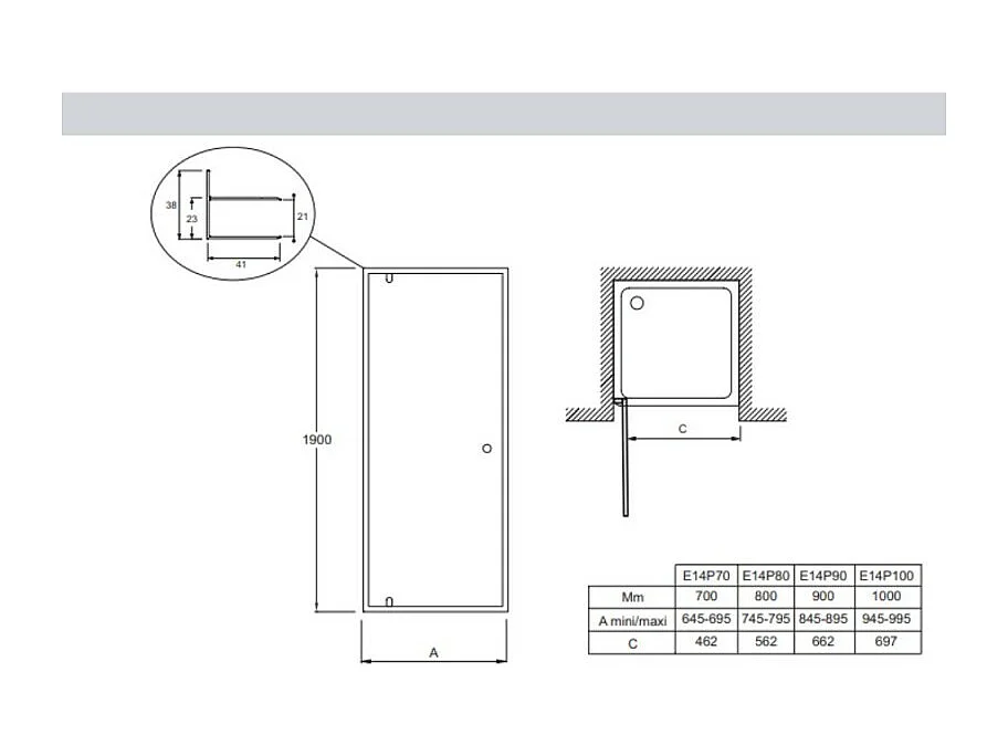Porte de douche 190 x 90 cm JACOB DELAFON Serenity pivotante et silencieuse