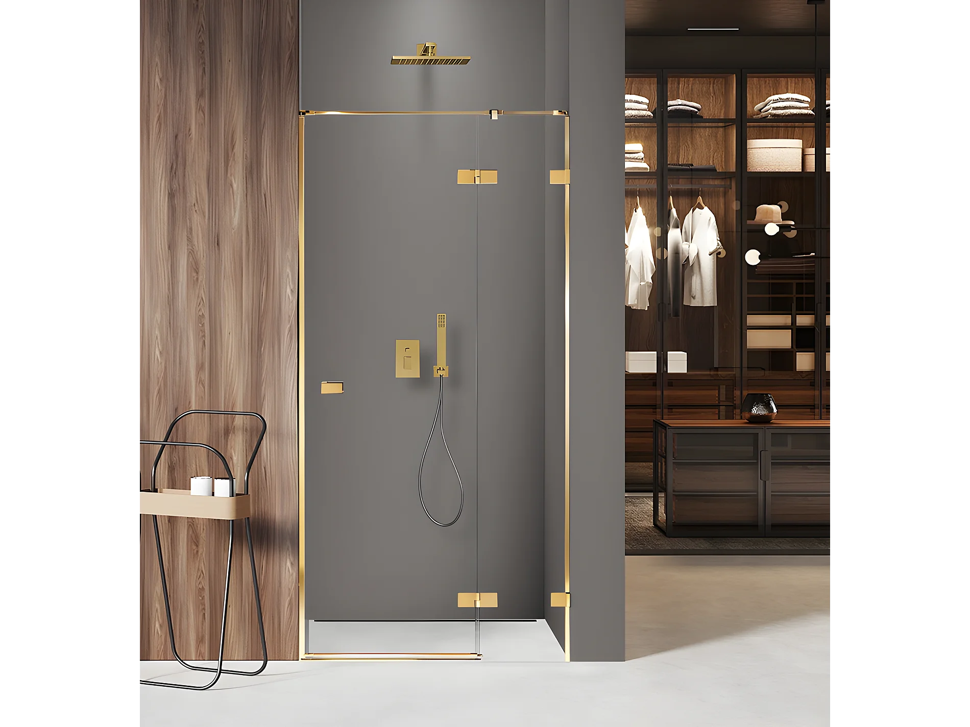 Porte de douche 90 cm doré pivotante droite MIAMI GOLD